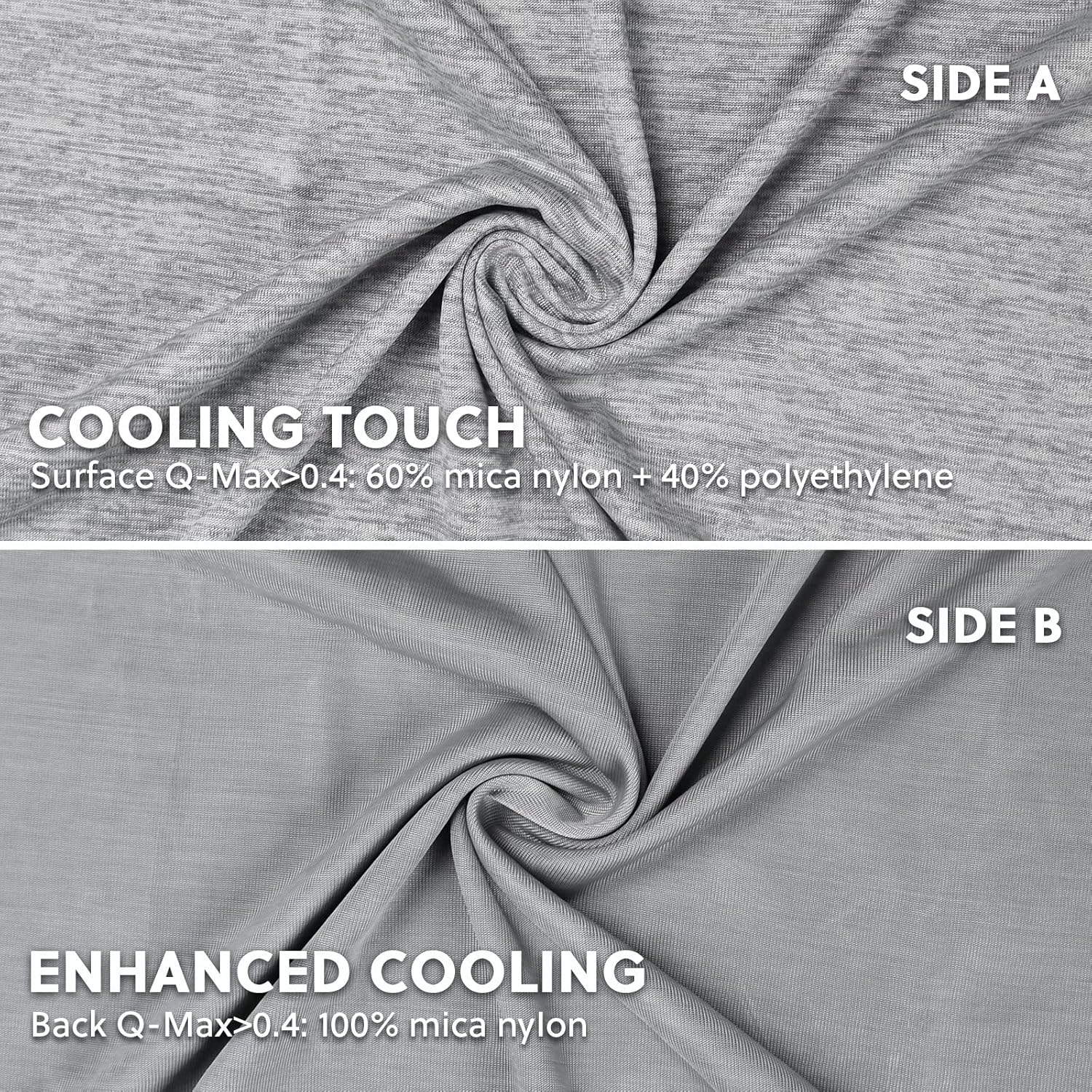 - ENHANCED COOLING - Different from other pillowcases with cooling fiber on the front + ordinary cotton on the back, our cooling pillow covers with double side enhanced cooling design. Both sides use premium cooling fibers and both side Q-Max>0.4. (Surface: 60% mica nyIon + 40% poIyethyIene, Back: 100% mica nyIon). Meanwhile cause we use larger size dense weave cooling fabric, the cooling feeling is greatly enhanced.