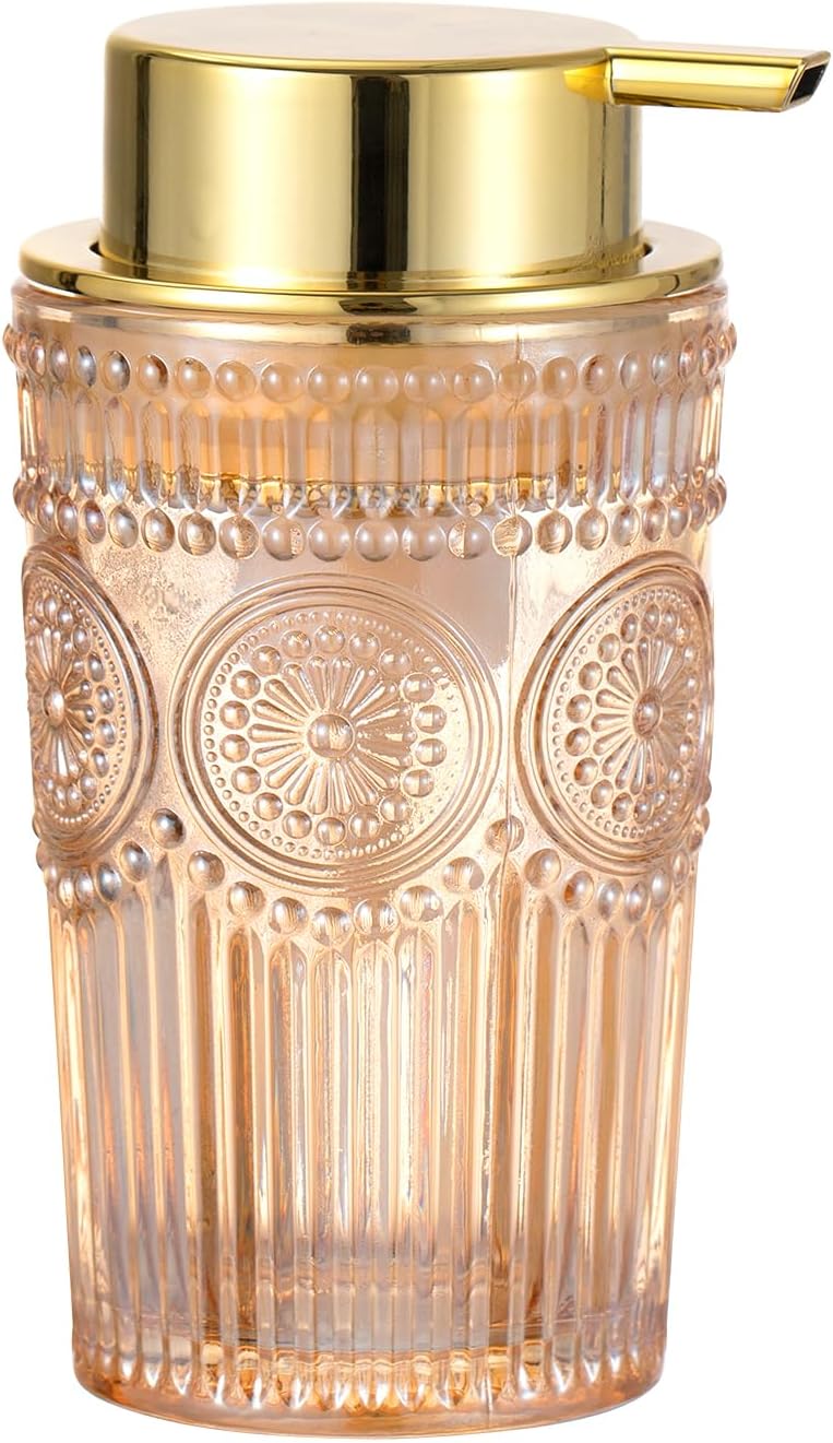 Foaming Hand Soap Dispenser, Glass Foam Soap Holder, Refillable Lotion Dispenser (L-Gold-Foaming)
