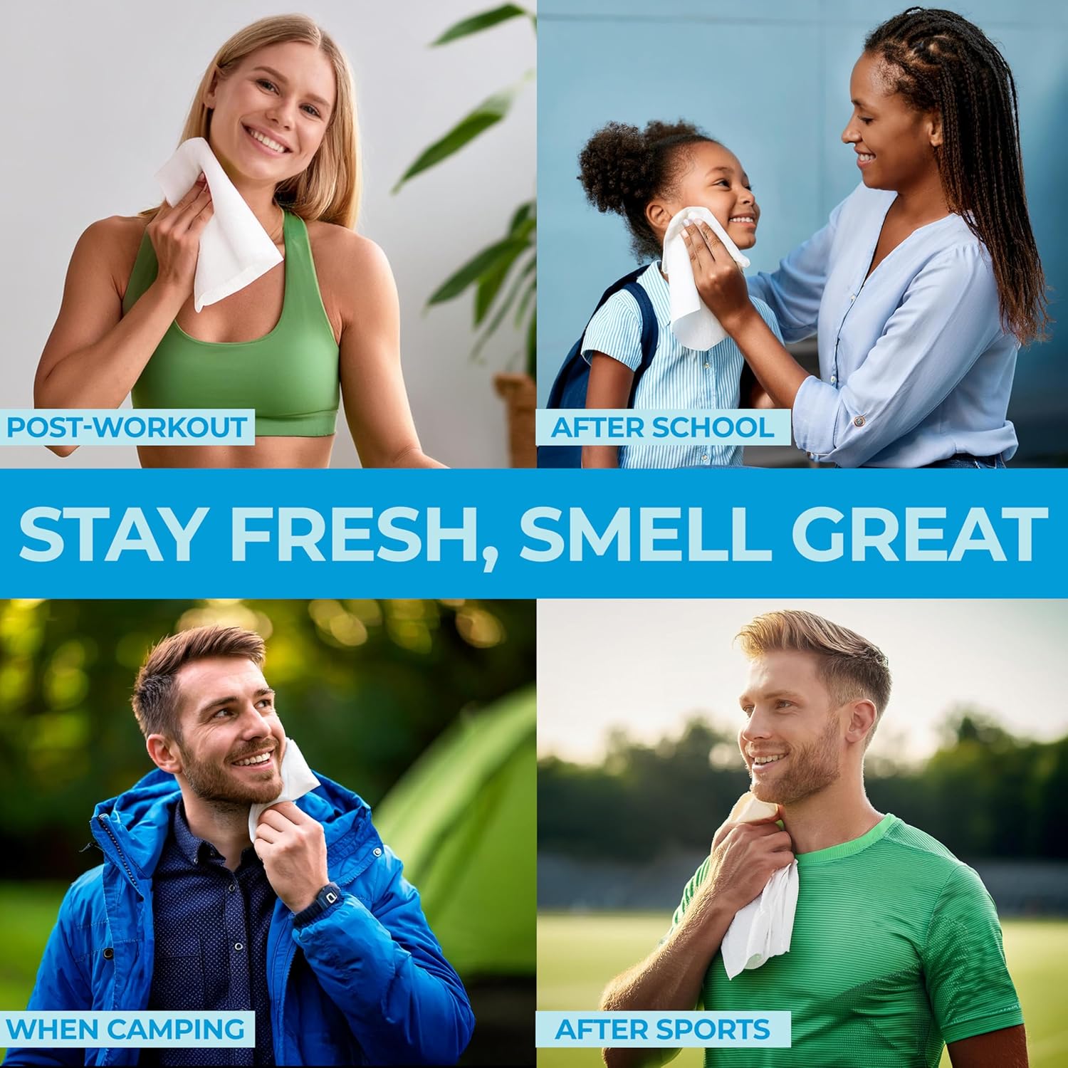 - Effective Cleaning: Our jumbo-sized, no-rinse bathing wipes are the ultimate solution for on-the-go cleansing! These extra moist body cleaning wipes gently but thoroughly lift and remove dirt, sweat, grease, and grime without stripping your skin's moisture. Safe to use in outdoor settings and microwaveable for a warm, luxurious clean. No sticky residues. Say goodbye to soap and water, and hello to clean, refreshed skin with our on-the-go waterless shower wipes.