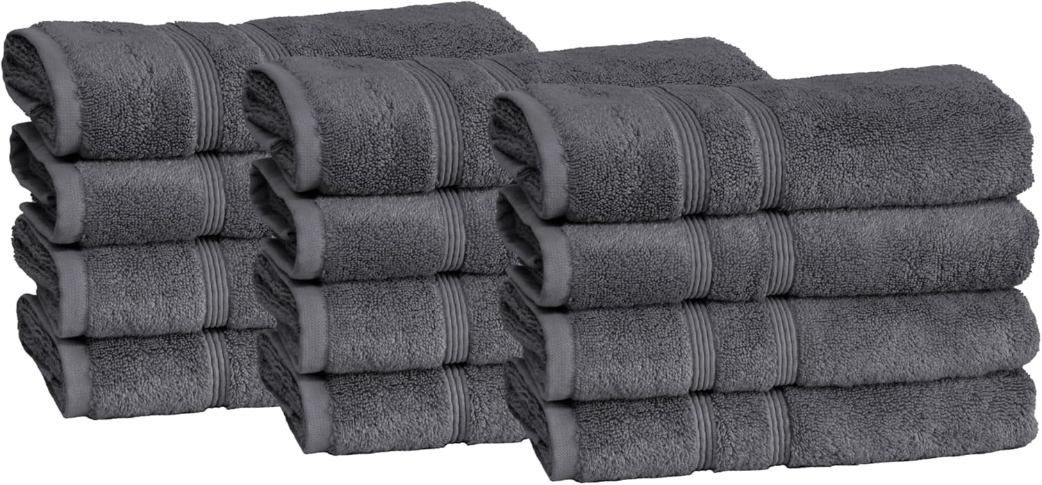 Mosobam Luxury Turkish Set of 12 Hand Towels 16X30 Charcoal Gray (Dark Grey) 700 GSM Bamboo Viscose & Aegean Turkish Combed Cotton