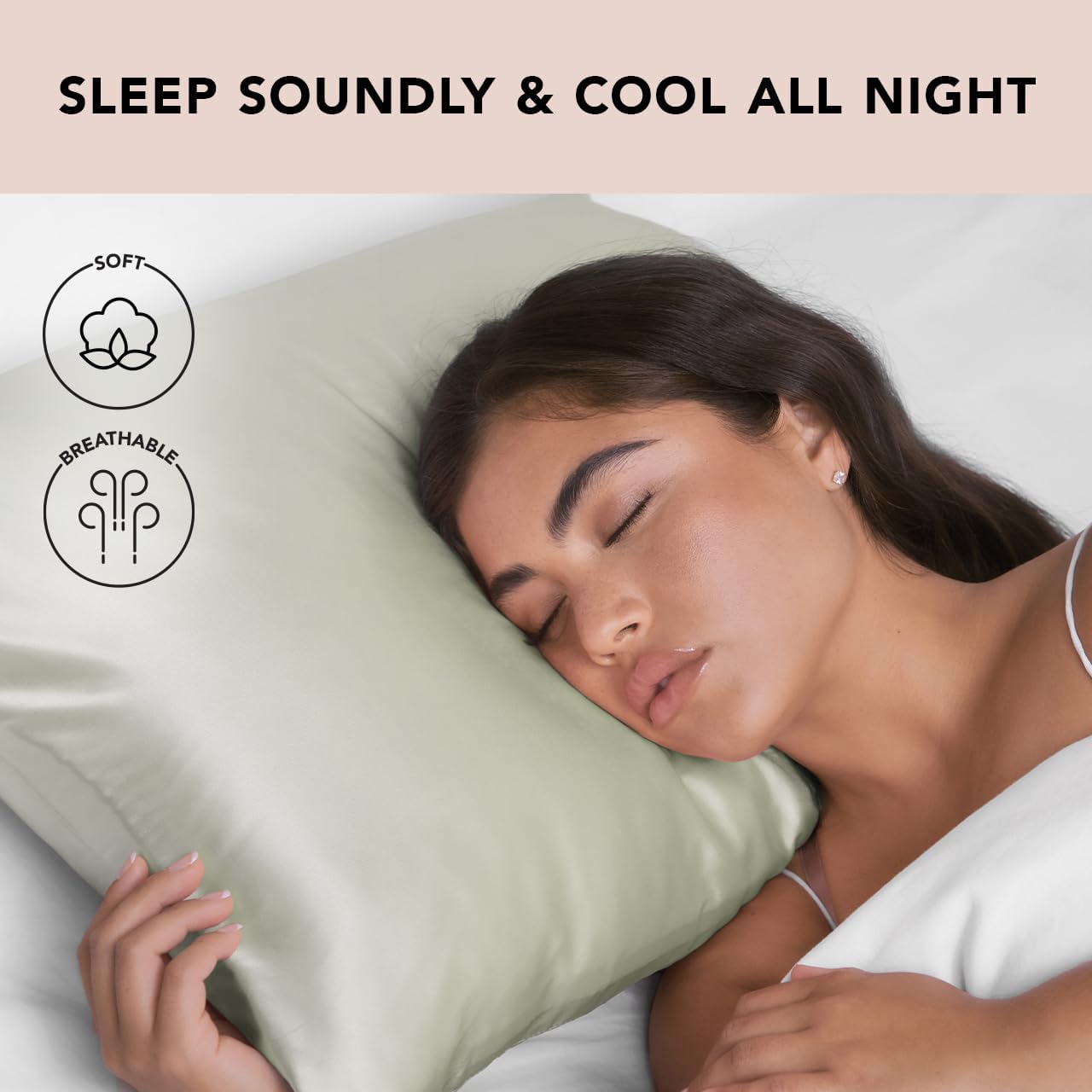 - STAYS COOL & BREATHABLE ALL NIGHT – Our satin fabric regulates temperature to keep you cool and comfortable while you sleep. The silky-soft pillow case is gentle on skin, hair, eyelashes, and eyebrows—perfect for year-round comfort.