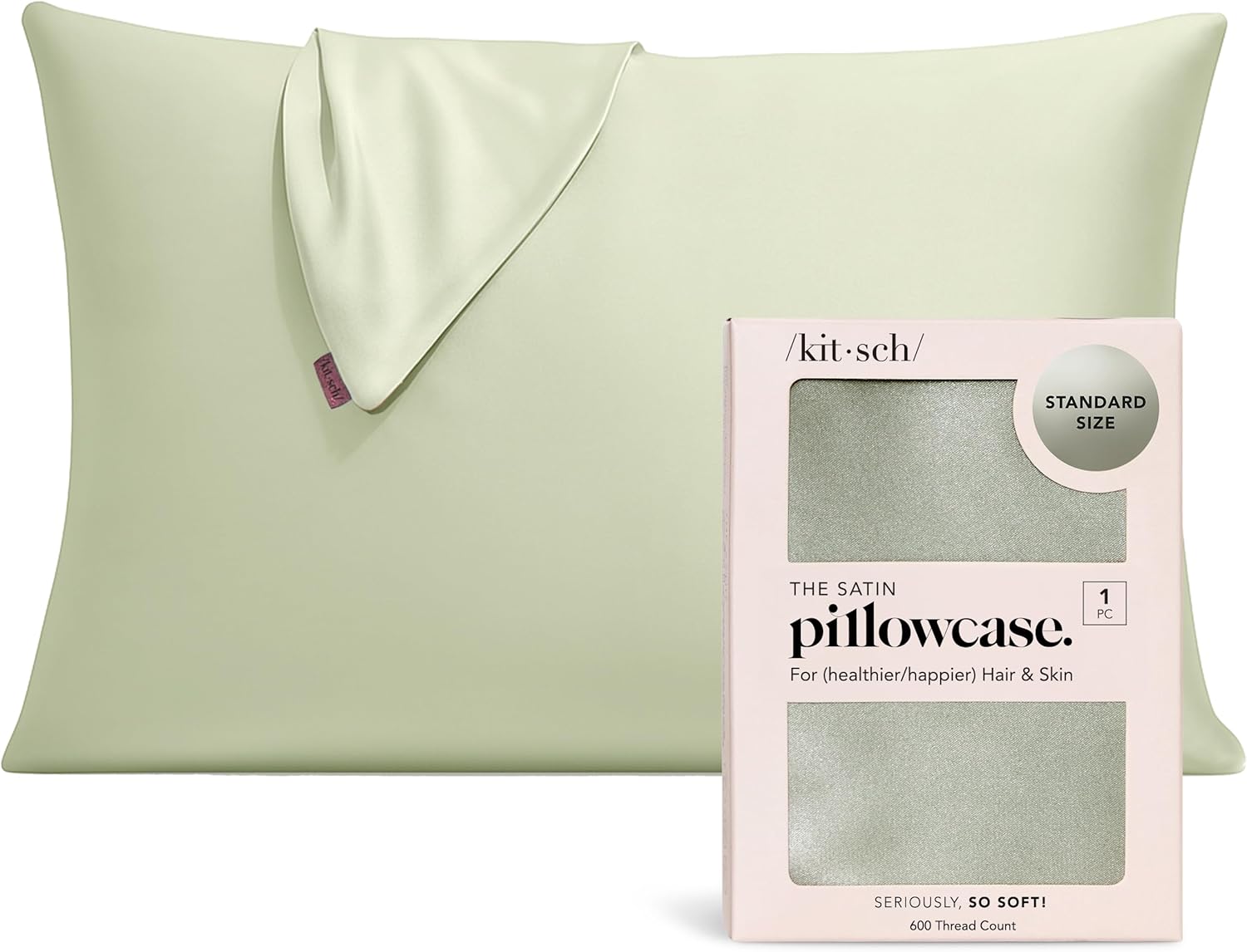 Kitsch Satin Pillowcase with Zipper for Hair & Skin, Softer Than Silk Pillow Cases Queen, Wrinkle-Free, Smooth and Cooling Satin Pillow Covers, Standard Size 19"x26" - Sage