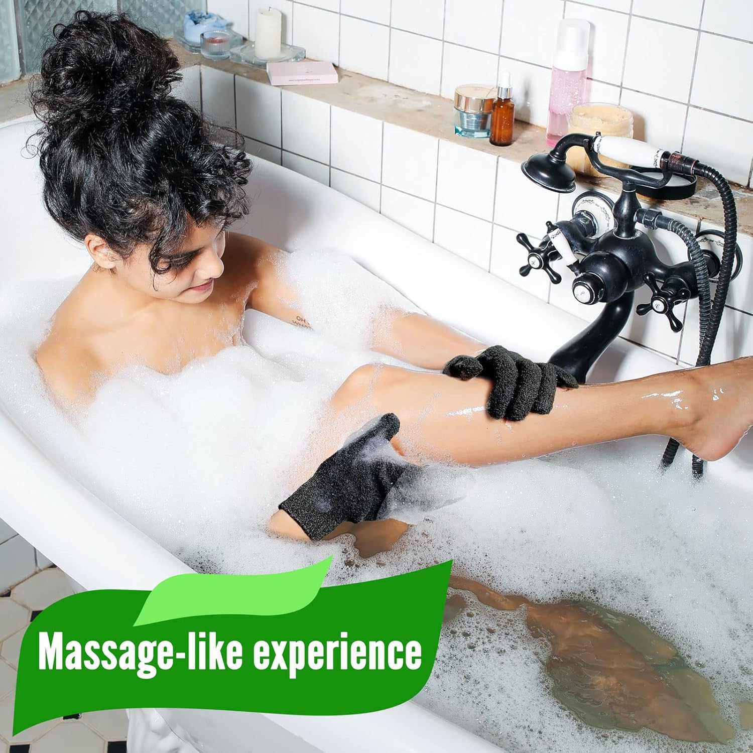 - Heavy nylon bath gloves for shower: Your order will come with 2 pairs body exfoliate gloves, you can use them interchangeably or share with your family and friends. Exfoliate and cleanse your skin to a silky smooth and soft with our body scrub gloves.