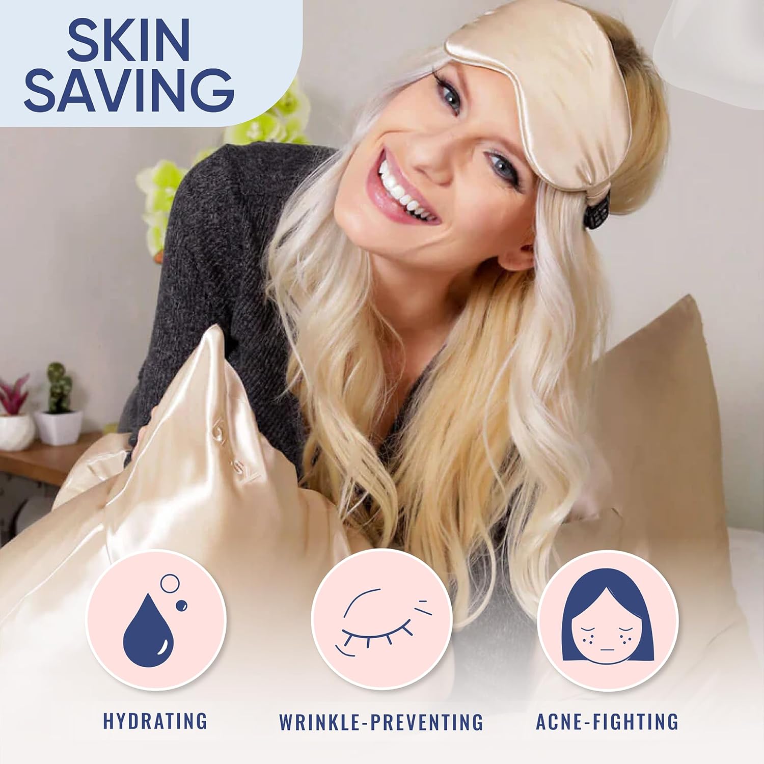 Blissy Silk Pillowcase - 100% Pure Mulberry Silk - 22 Momme 6A High-Grade Fibers - Silk Pillow Cover for Hair & Skin - Regular, Queen & King (Champagne, Queen)