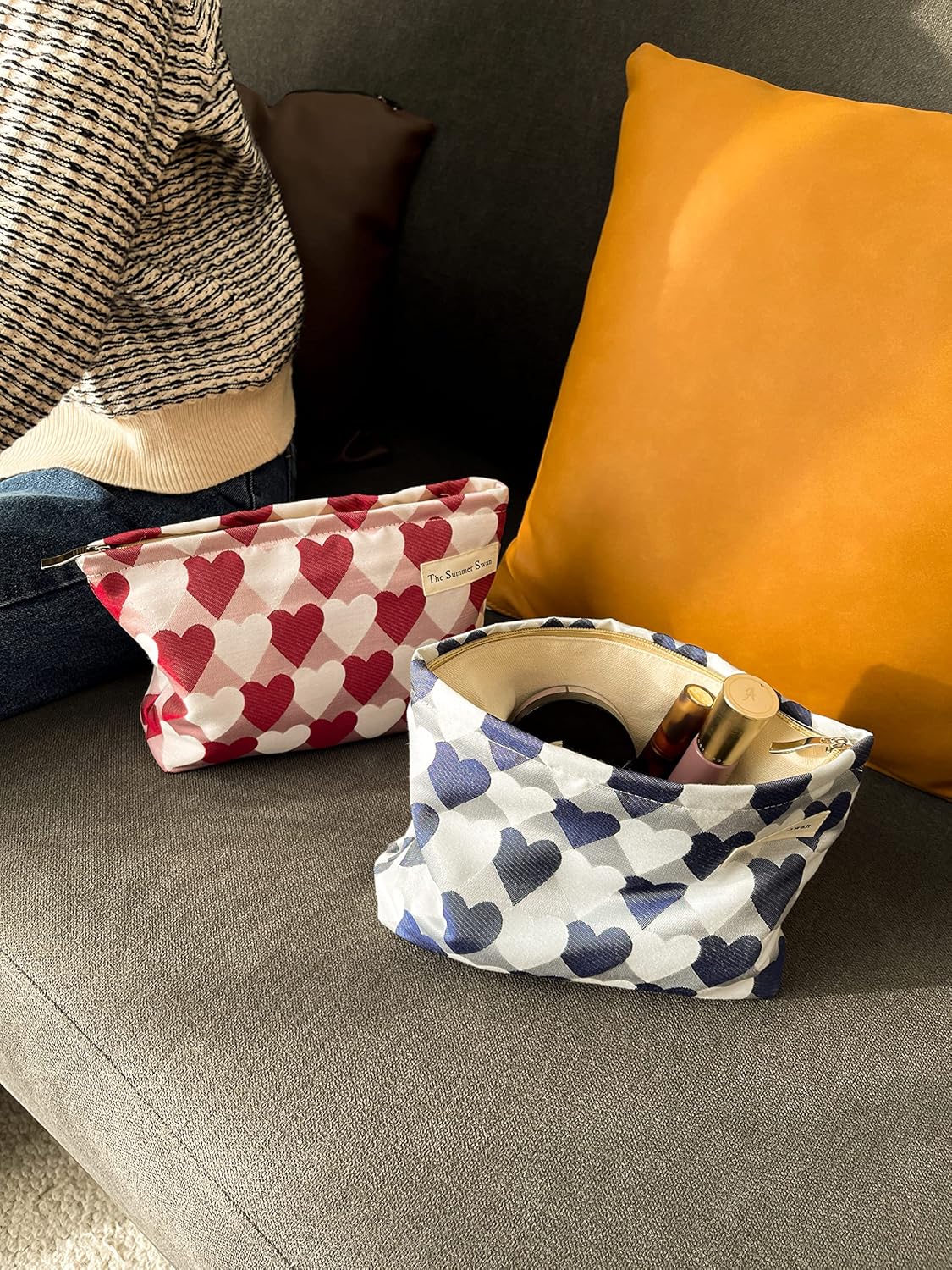 - [ * The Versatility * ] Cosmetic bag in your bathroom + Travel toiletry bag in your suitcase + Makeup pouch in your tote + Purse on the beach chair for your sunscreen & hotel keys. The Summer Swan fits your needs - no matter what may be.