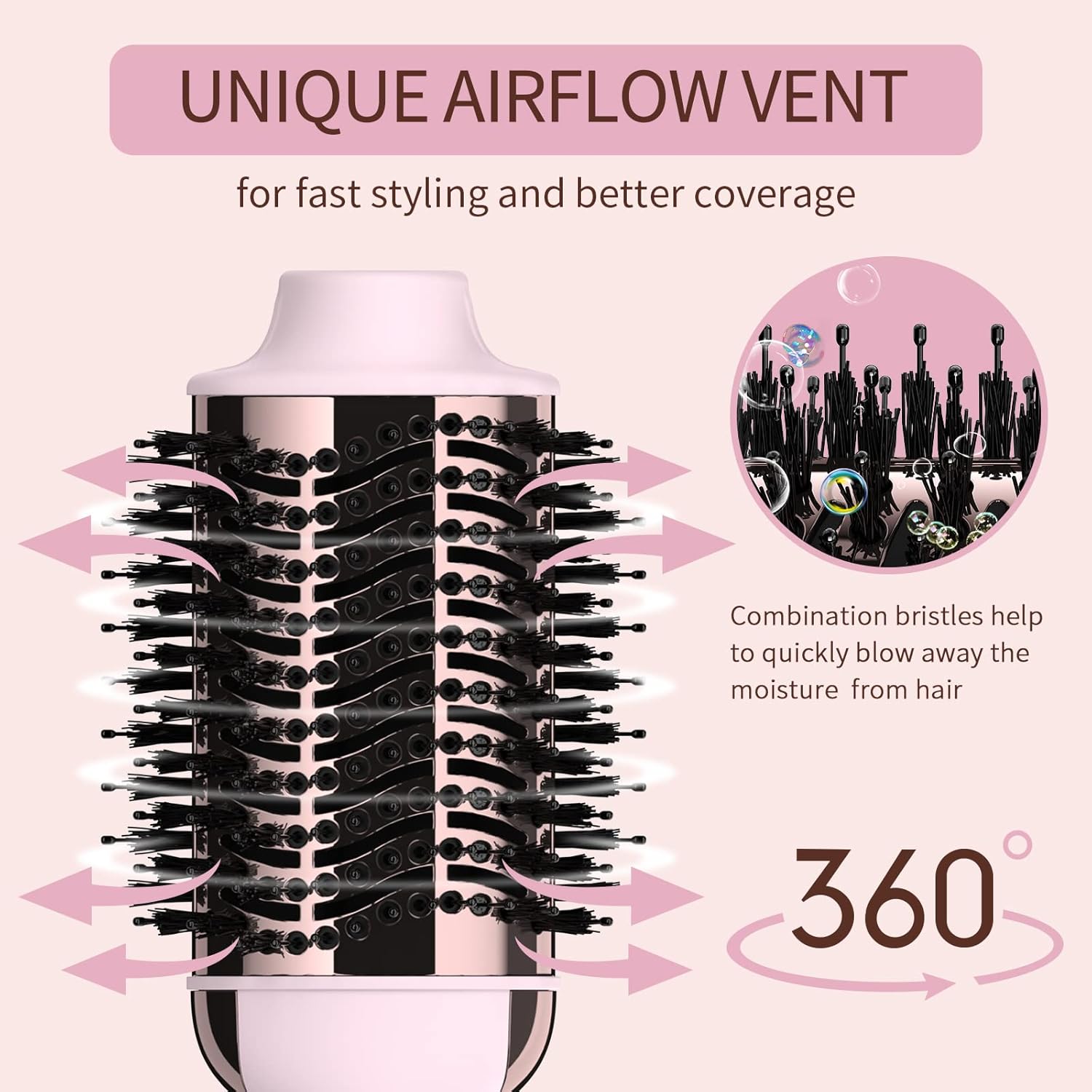 - Style And Dry In 1-Step: Style, dry & volumize your hair in one tool, max drying power with less frizz and helps reduce hair damage. This professional hair dryer brush enables you to complete the exquisite and gorgeous salon blowout results efficiently in a shorter time