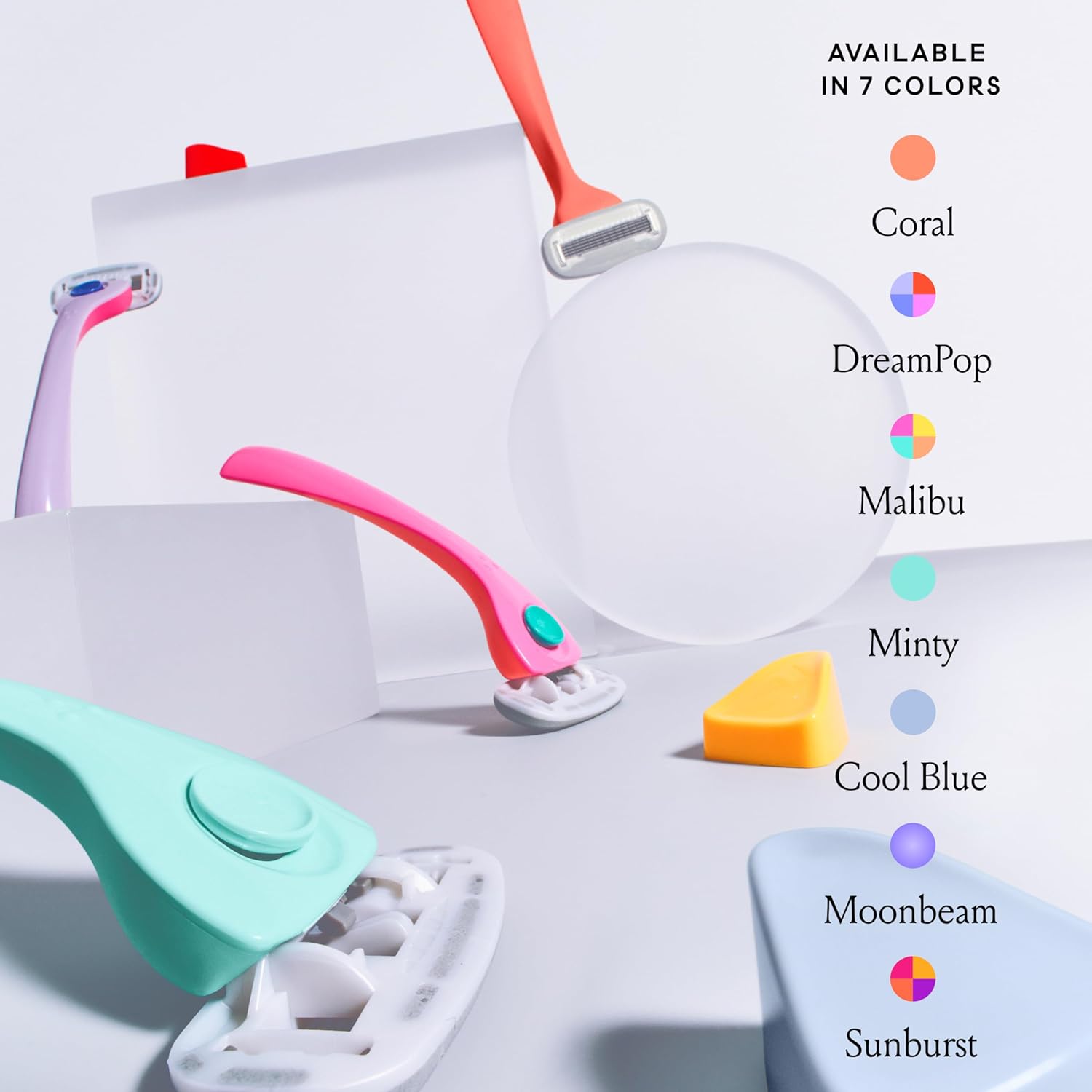 - EASY & COMFORTABLE: Non-slip ergonomic handle has a grippy matte texture with a pivoting head for a safe, confident shave, even in delicate areas and around curves. Comes in only fun colors to brighten your routine.