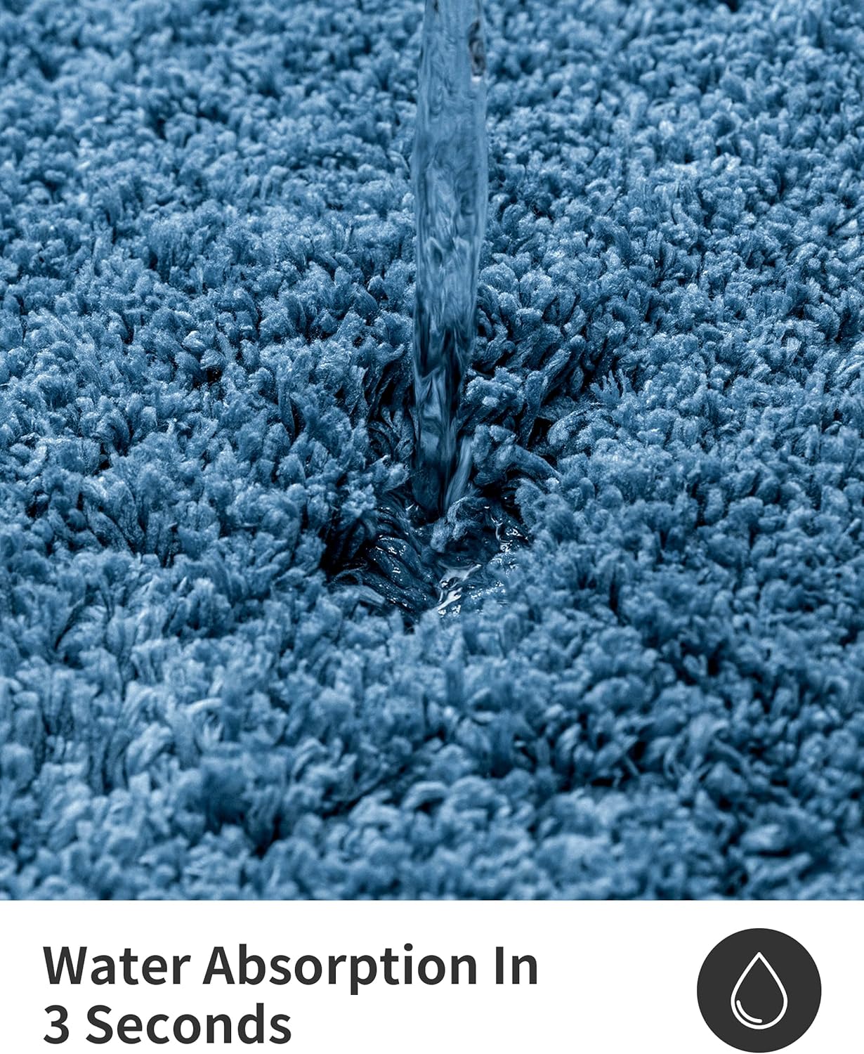 ILANGO Blue Bathroom Rugs 36" × 24" Non Slip & Super Absorbent Extra Thick Soft, Washable Bath Mat for Floor, Microfiber Plush Shaggy Bath Rug with Rubber for Bathtub Shower Room Sink