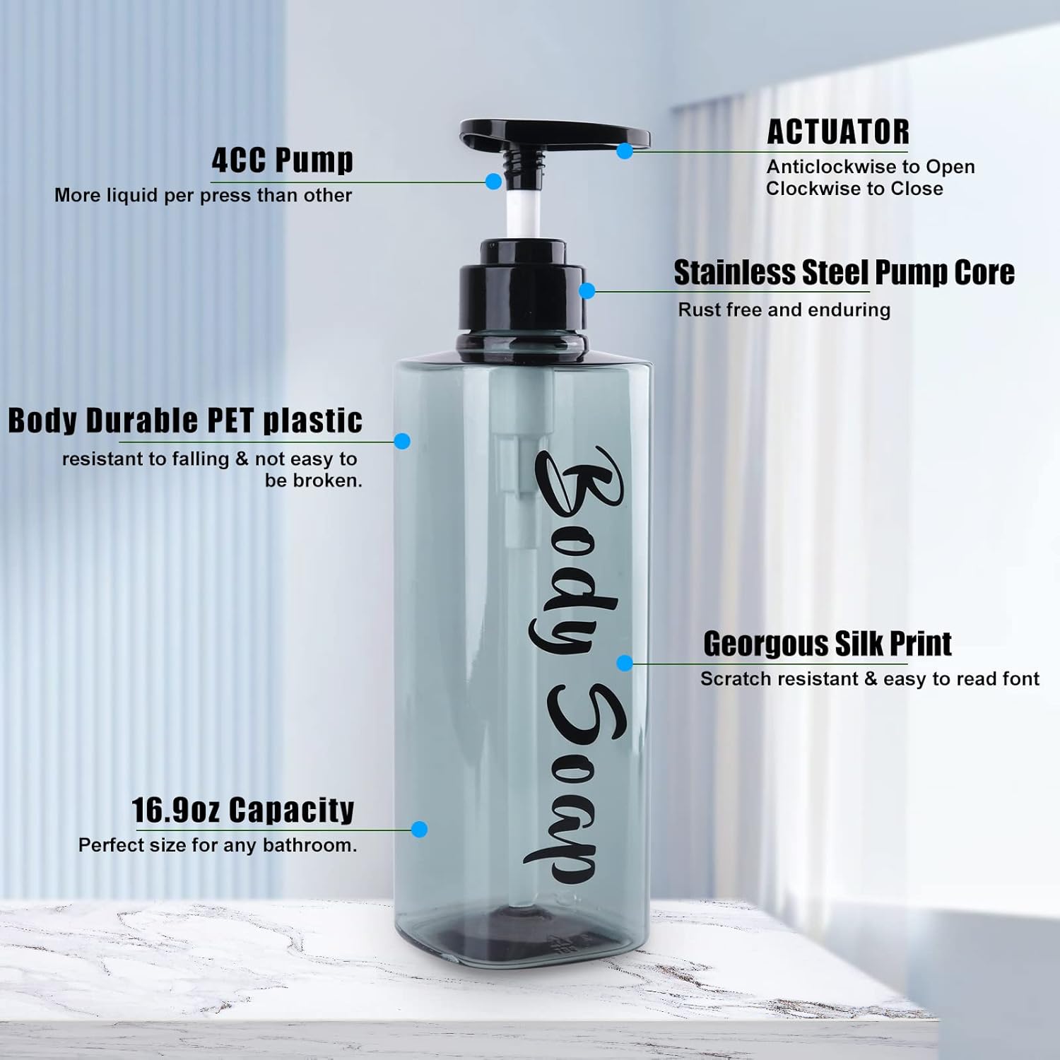 - 【Large Capacity & Space-Saving】 Each shampoo dispenser holds 16.9oz, ideal for daily use. The square shape fits perfectly in shower corners or caddies, saving valuable shelf space. Helps reduce clutter and maintain an organized look!
