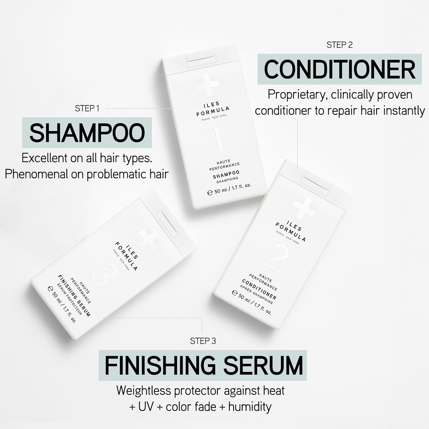 - CLEANSE AND REPAIR ON THE GO: Experience the benefits of the Iles Formula 3-step system with this moisturizing mini shampoo and conditioner set, clinically proven to reduce hair breakage by up to 89%. The sulfate-free, anti-frizz shampoo gently purifies without stripping, while the deep, reparative conditioner detangles, smooths and restores with sustainably sourced actives. Perfect for travel and for those just beginning their Iles Formula journey