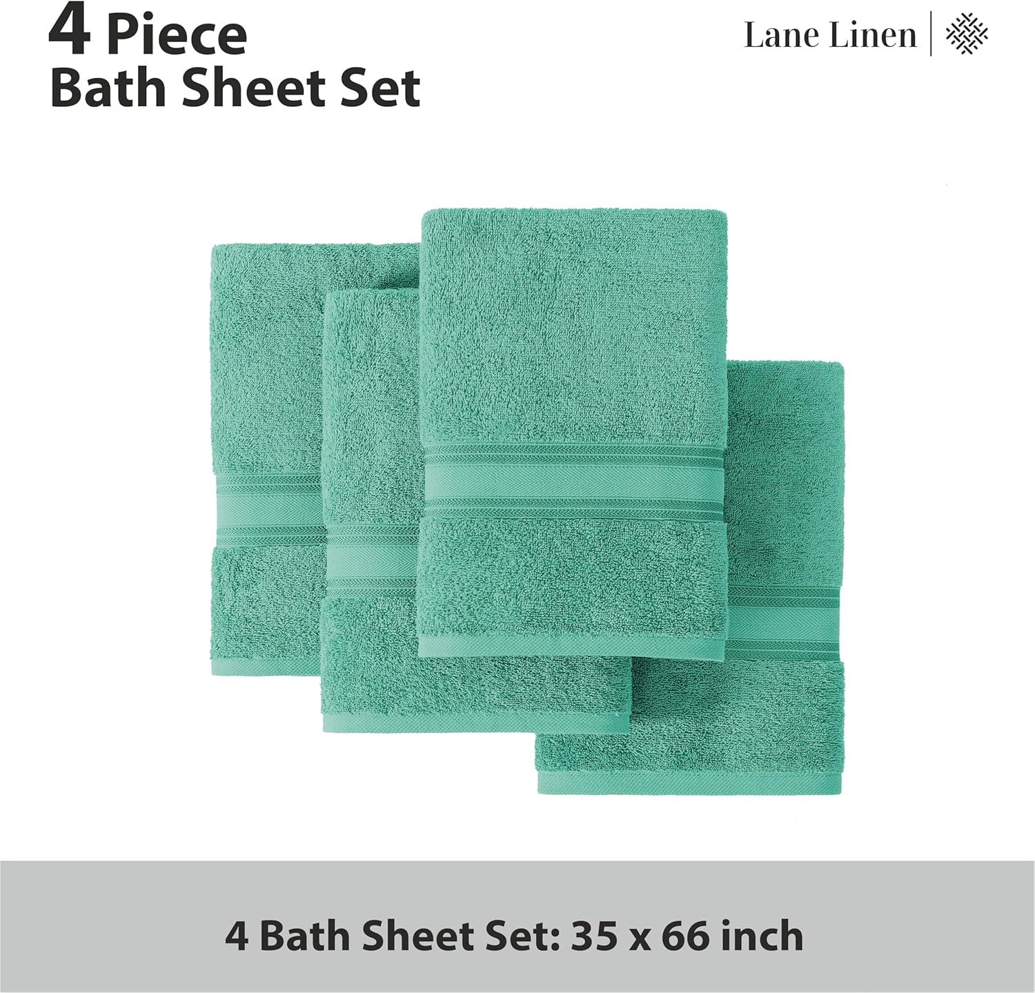 LANE LINEN Large Teal Cotton Bath Sheets, 4 Piece Set, Quick Dry, Super Soft Shower Towels, Highly Absorbent
