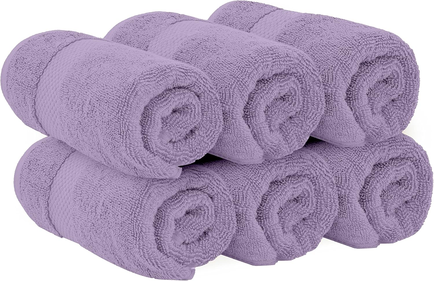White Classic Luxury Lavender Hand Towels - Soft 100% Turkish Cotton | Highly Absorbent Hotel spa Bathroom Towel Collection | 16x30 Inch | Set of 6