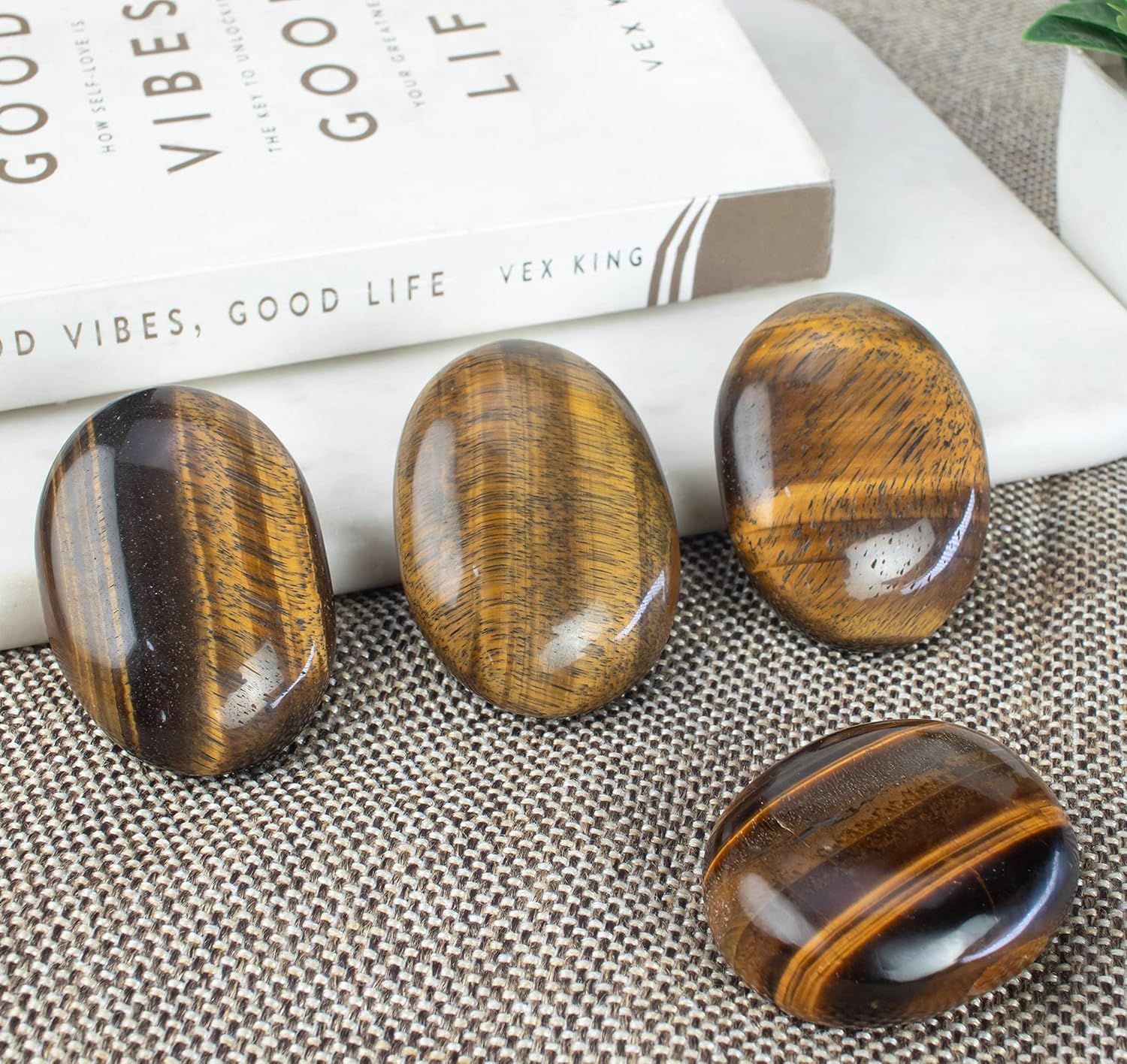 Crocon 50mm Tiger Eye Large Palm Stone 900+ Carats Pocket Worry Stones for Natural Chakra Balancing Reiki Healing Stones and Crystal Healing Spa Energy Crystals Gifts for Women
