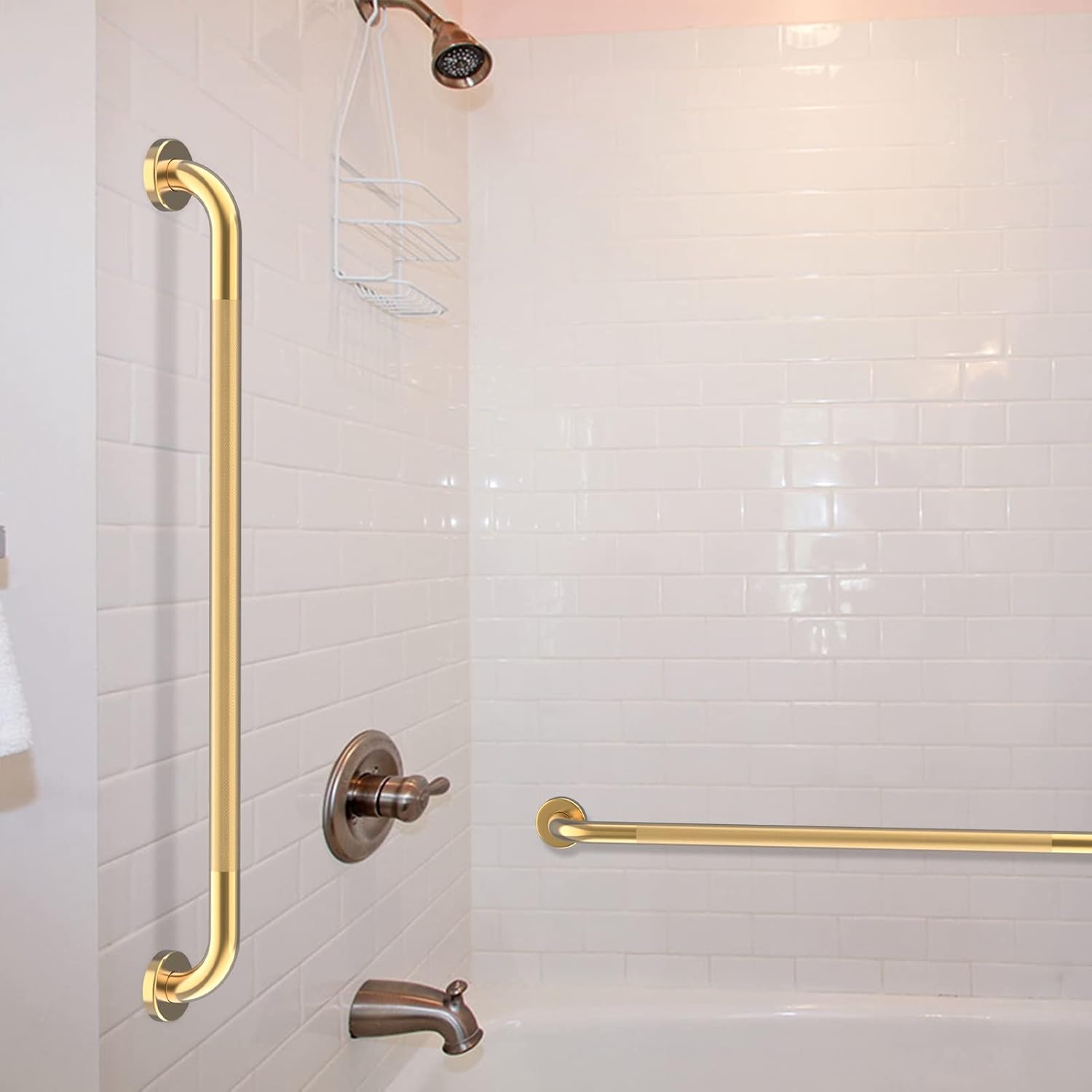 - Munzong 1 Pack 36 Inch Oil Rubbed Gold Stainless Steel Shower Grab Bar; the non slip knurled surface on middle is superior for safety when you have soapy hands and need to steady yourself