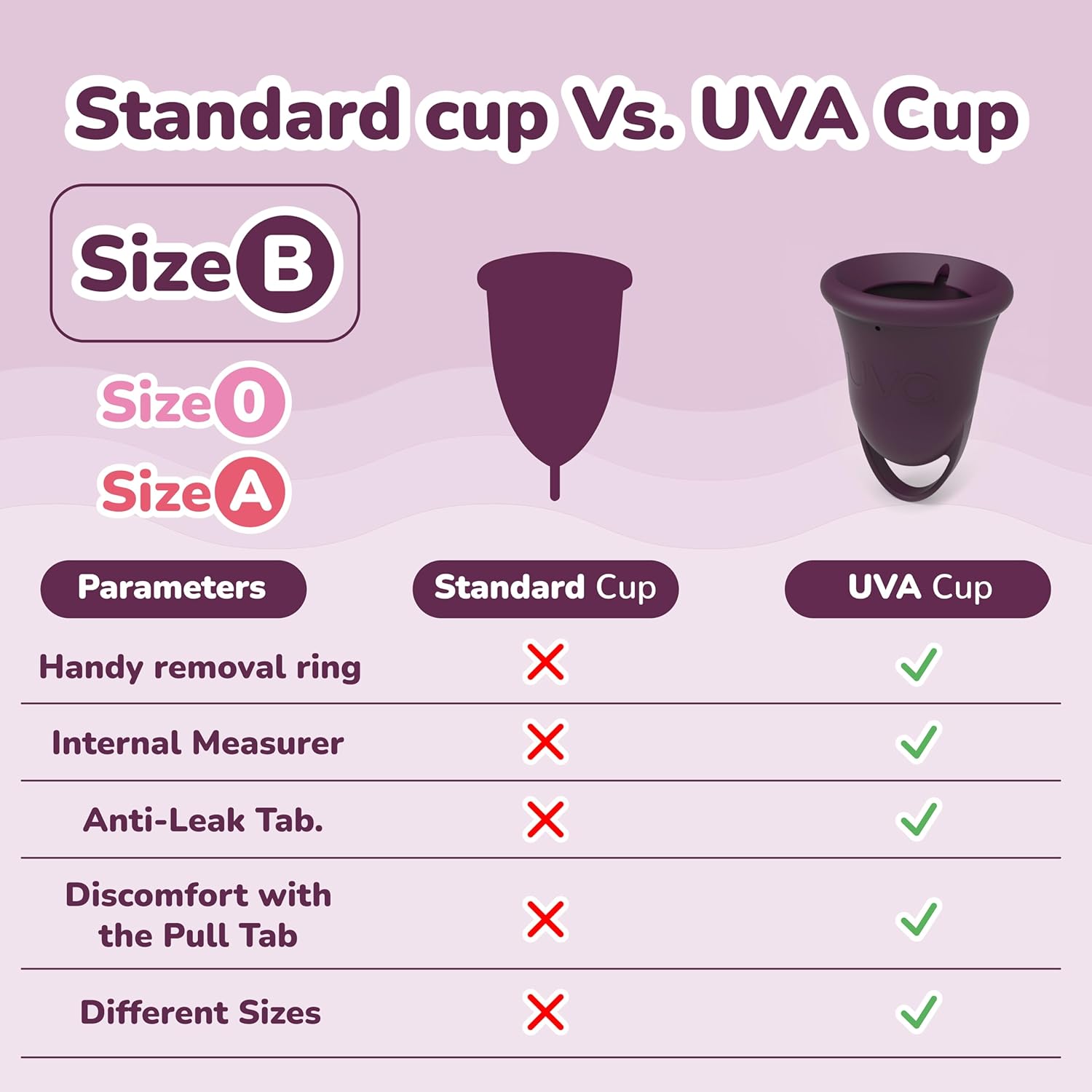 - Full Set Menstrual Cup Kit: Your UVA Cup 2 kit comes with a Size B menstral cup, a period cup steamer for easy cleaning, a user guide for proper usage, and a travel bag to keep it all handy, so youโre always prepared wherever you go.