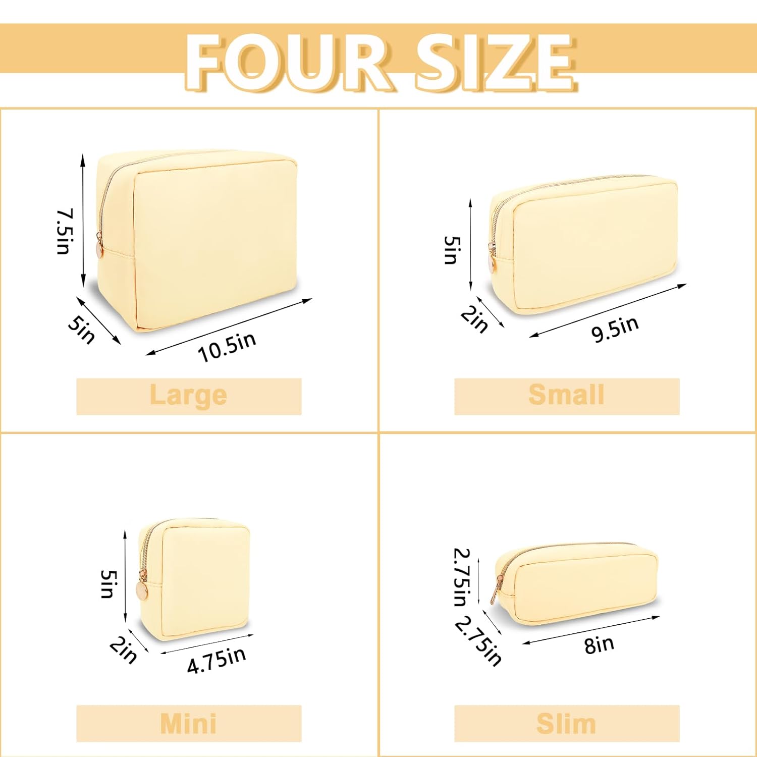 • 【Multiple Options】The cute makeup bag has four sizes, Mini(4.75''*2''*5''), Small(9.5''*2''*5''), Large(11''*5''*8'') and Slim(2.75*8''*2.75''). You can choose the right size according to the items you want to store. We have nine colors, Bubblegum, Sand, Chocolate, Periwinkle, Cotton Candy, Peach, Flamingo, Grape and Khaki. You can enjoy choosing the color you like.