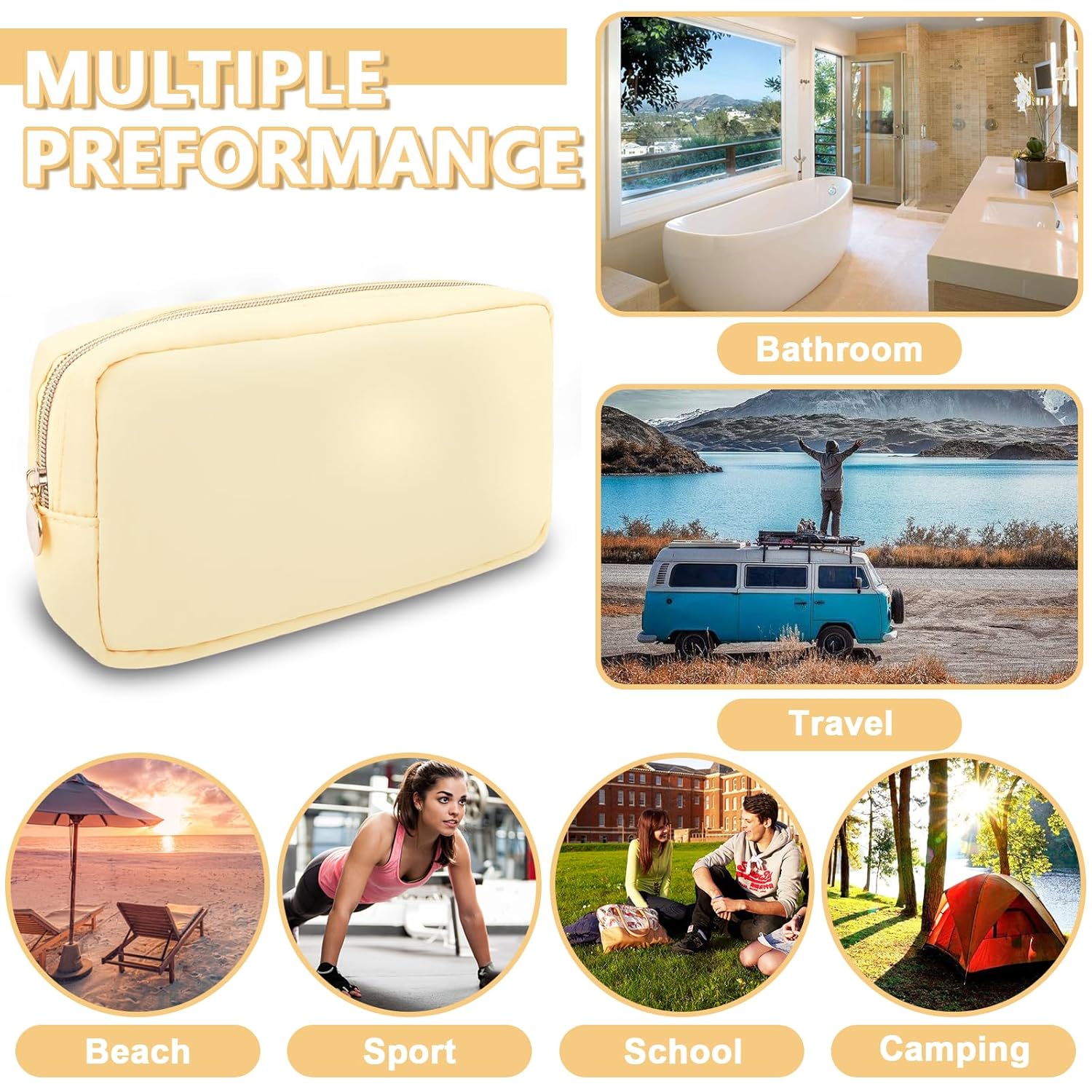 Small Makeup Bag Pouch for Purse, Nylon Travel Toiletry Storage Bag Cute Preppy Cosmetic Bag for Women Girls, Waterproof Makeup Organizer Bag Pouch Skincare Bag Purse with Zipper (Small-Sand)