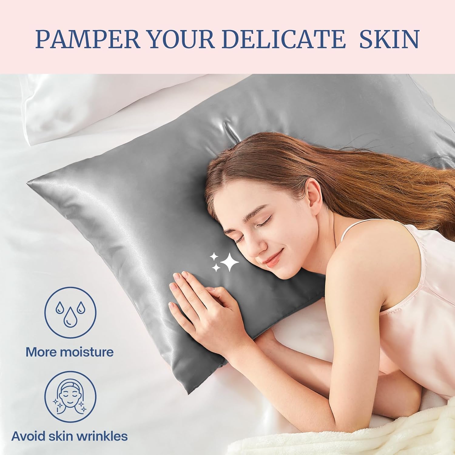 BEDELITE Satin Pillowcase for Hair and Skin, Super Soft and Cooling Similar to Silk Pillow Cases 2 Pack with Envelope Closure, Gift for Women Men(20"x36" King Size, Grey)