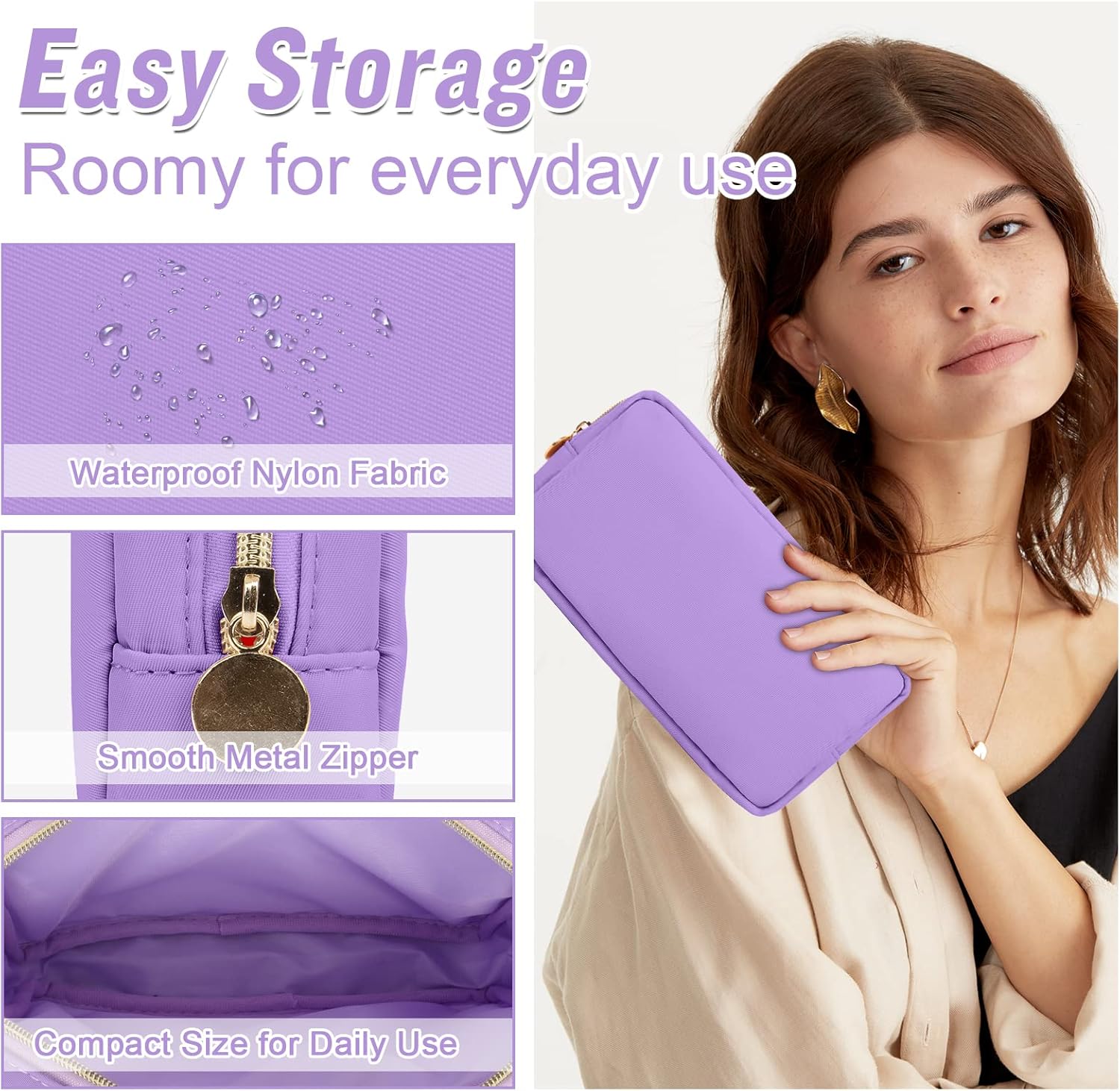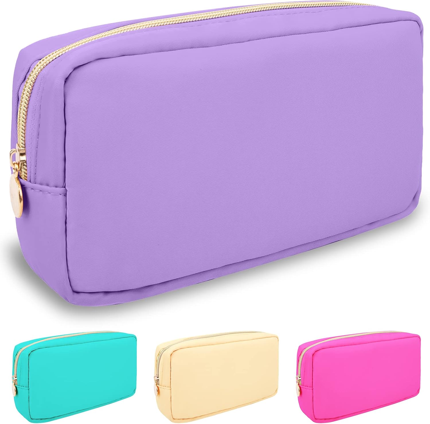 - ❤【DIY Your Bag & Patches Friendly】Small compact makeup bag material allows you to easily attach your favorite patches and fits all travel toiletries. You can put any chenille letters or patterns you want on it, "STUFF" SNACK "BEACH" and so on to design your unique travel makeup bag. Make your preppy makeup bag very interesting and vivid!