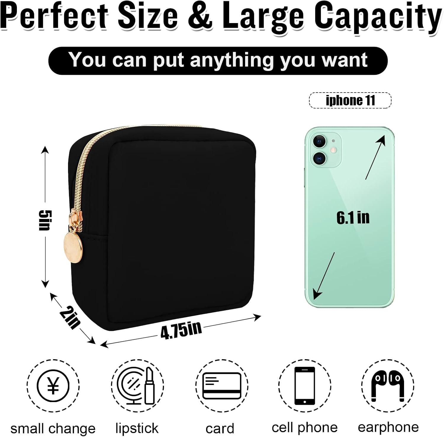 - ❤【Compact & Perfect Size】Mini Makeup Bag Size is 5*4.75*2inch/12.7*12*5cm, the compact storage bag can store all your sanitary napkins, lip balms, lipsticks, cosmetics, mini mirrors, jewelry, keys, cash, credit cards, etc. The easy and large opening design makes it easy to take. Keep your contents separate and organized.