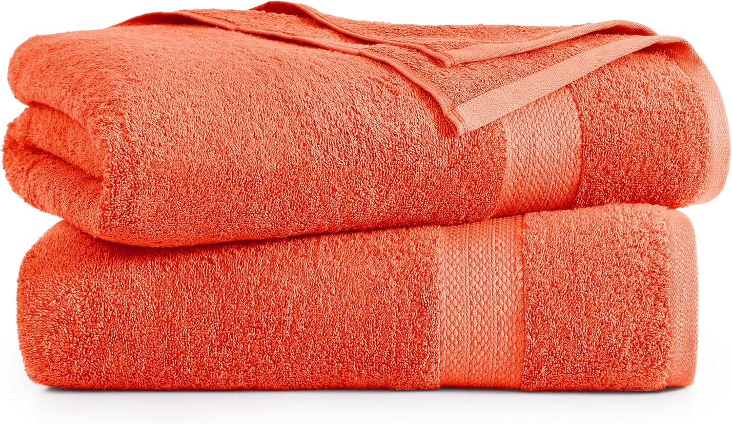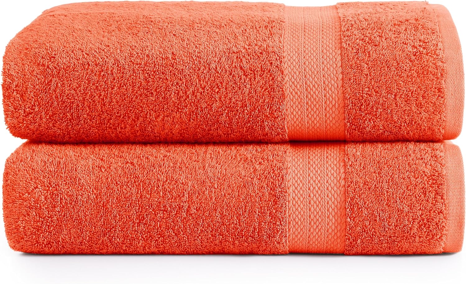 LANE LINEN 100% Cotton 2 Pack Bath Sheets Set (35"x66") - Ring Spun Cotton Extra Large Bath Towels Set - Quick Dry, Soft & Absorbent Oversized Towel Sets - Dorm Essentials for Boys - Tiger Lily