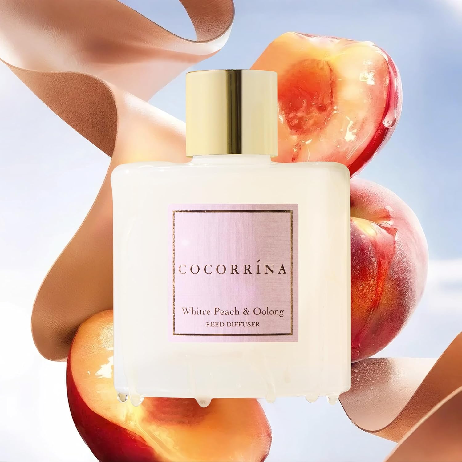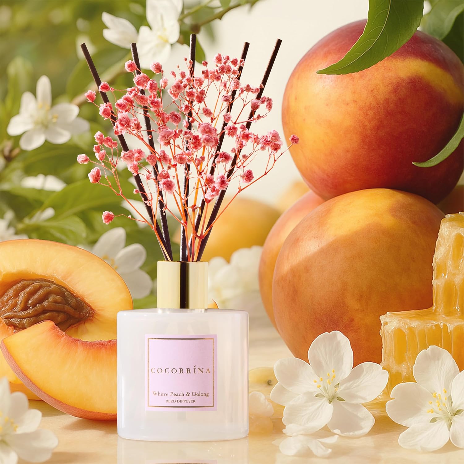 Cocorrína Reed Diffuser Sets - 6.7 oz. White Peach& Oolong Scented Diffuser with 8 Sticks Home Fragrance Reed Diffuser for Bathroom Shelf Decor