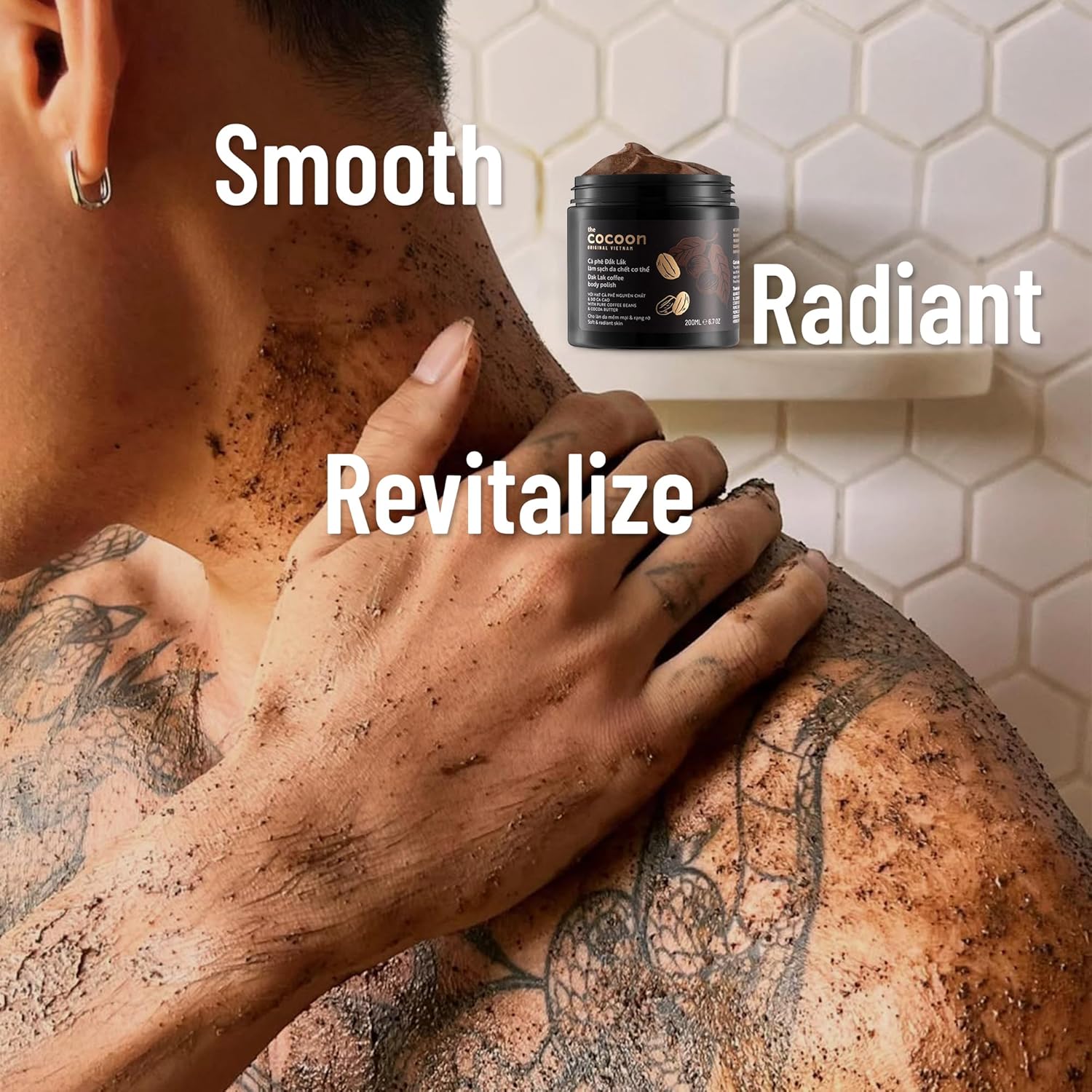 Cocoon Dak Lak Coffee Body Polish with Coconut & Shea Butter. 100% Vegan Exfoliating Scrub for Smooth & Glowing Skins | Reduce Stretch Marks, Acne & Cellulite | Gift for Coffee Lovers (20.29 fl oz)