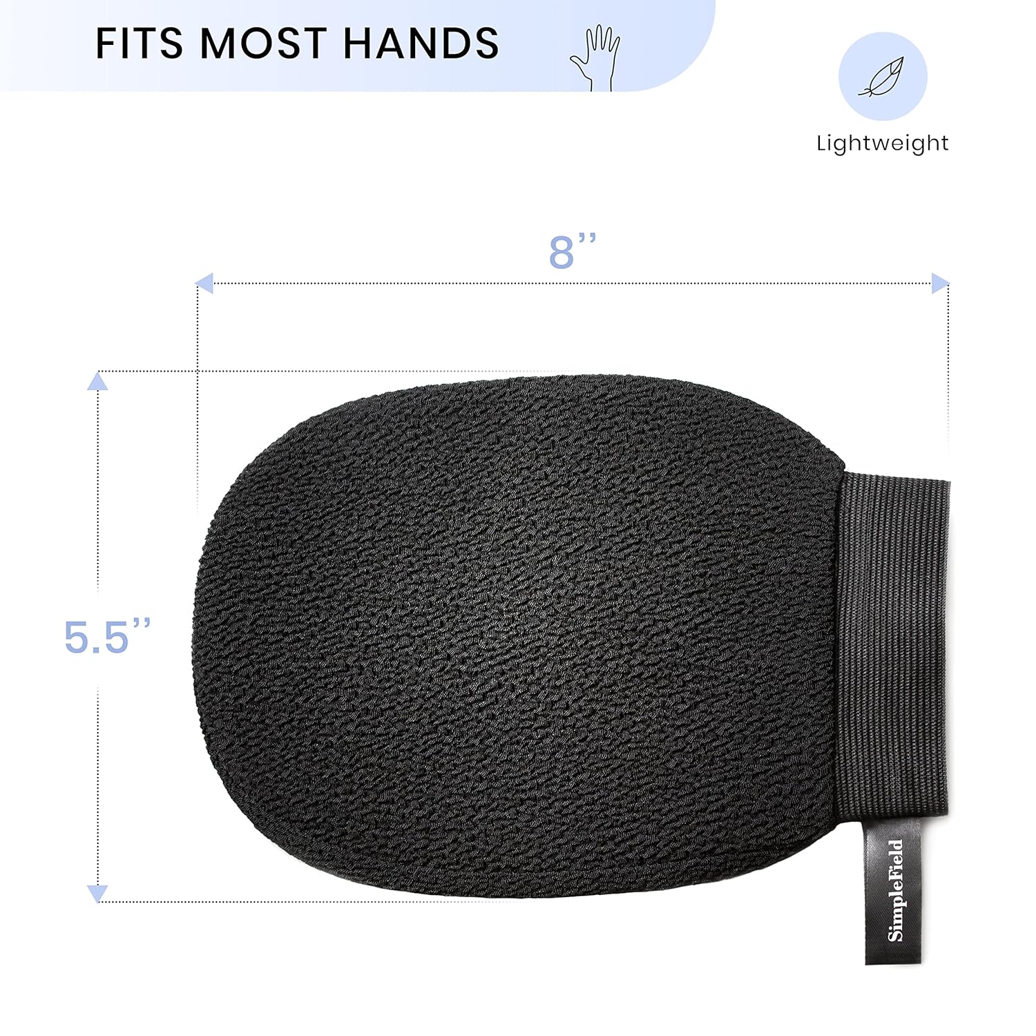 - One size fits All. Wears them easily on your hand for exfoliating control.