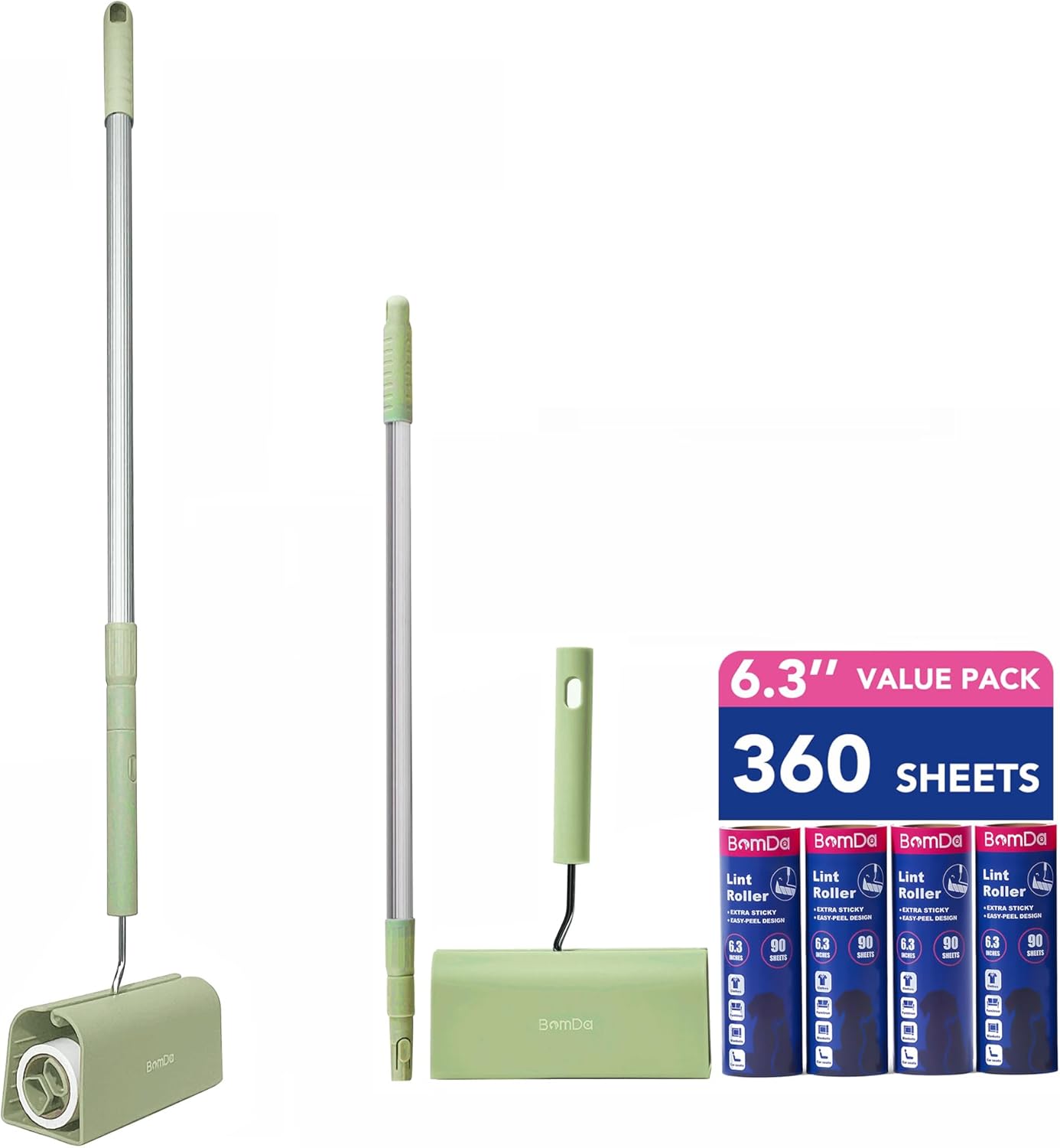 - ADJUSTABLE EXTENDABLE HANDLE: This heavy-duty lint roller extends from 11" (bed/couch) to 55" (floor cleaning), with 3 fixed positions (11", 36", 55") for optimal control across all surfaces.