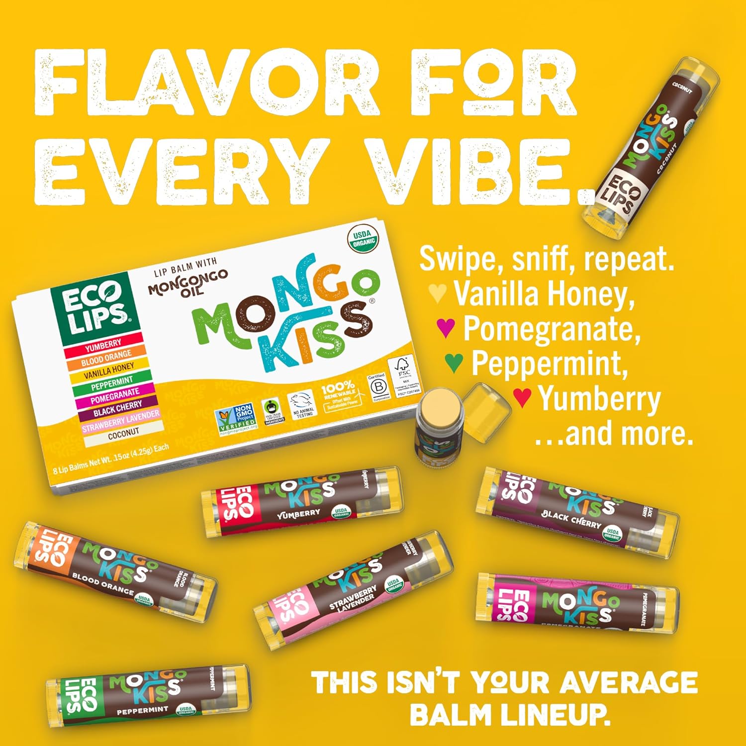 Mongo Kiss USDA Organic Lip Balm Set 8-pack (0.15 oz. each) with Mongongo Oil & Cocoa Butter to Moisturize Chapped Lips | Made in USA by Eco Lips (Variety)