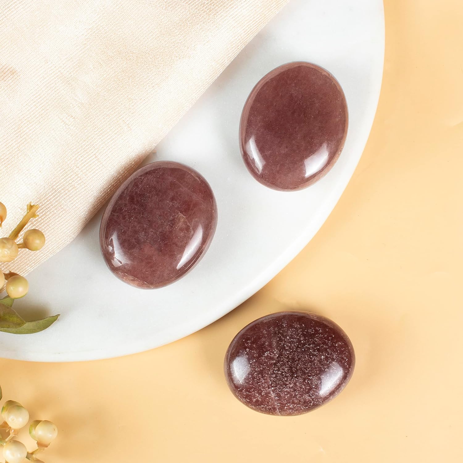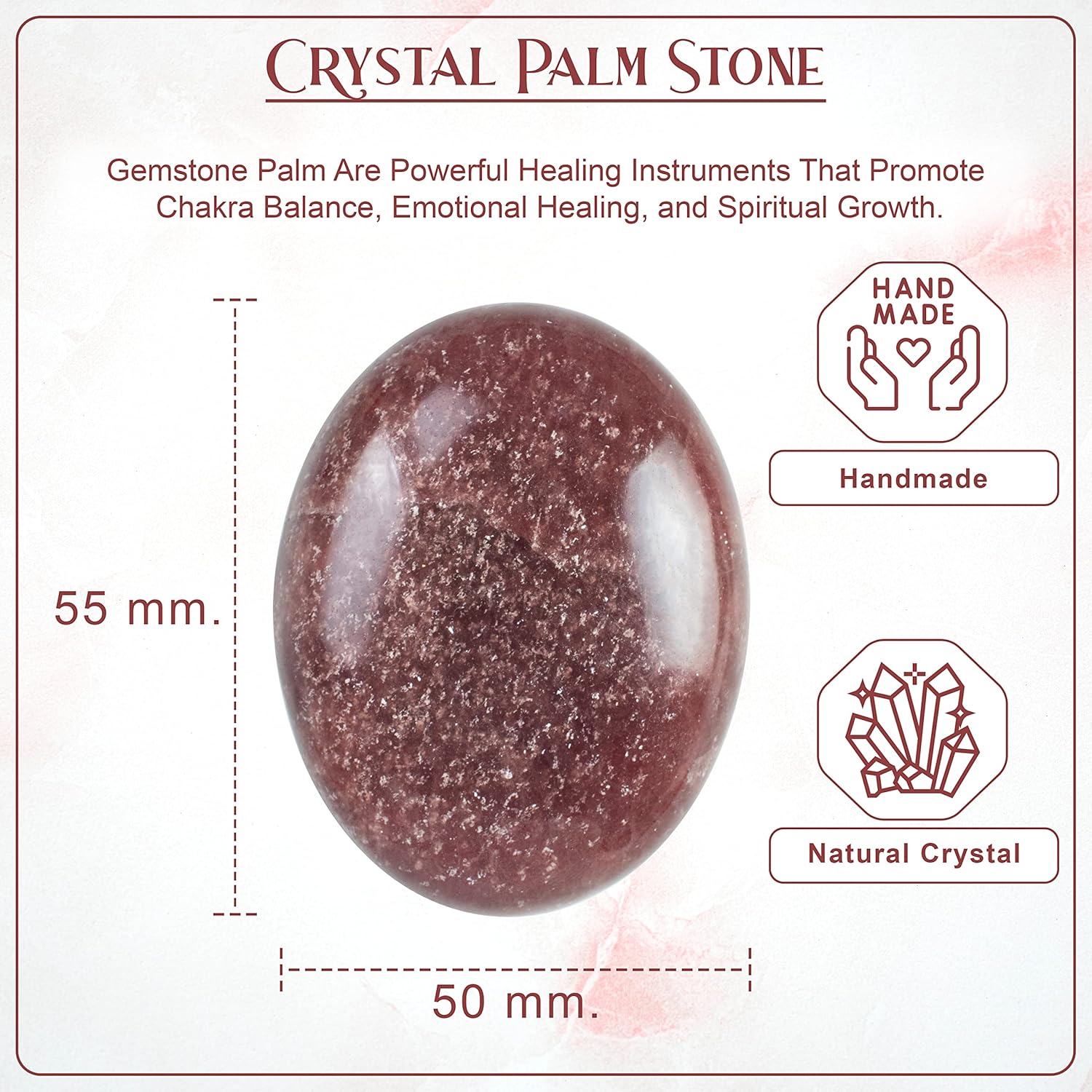 Crocon 50mm Strawberry Quartz Large Palm Stone 900+ Carats Pocket Worry Stones for Natural Chakra Balancing Reiki Healing Stones & Crystal Healing Spa Energy Crystals Gifts for Women