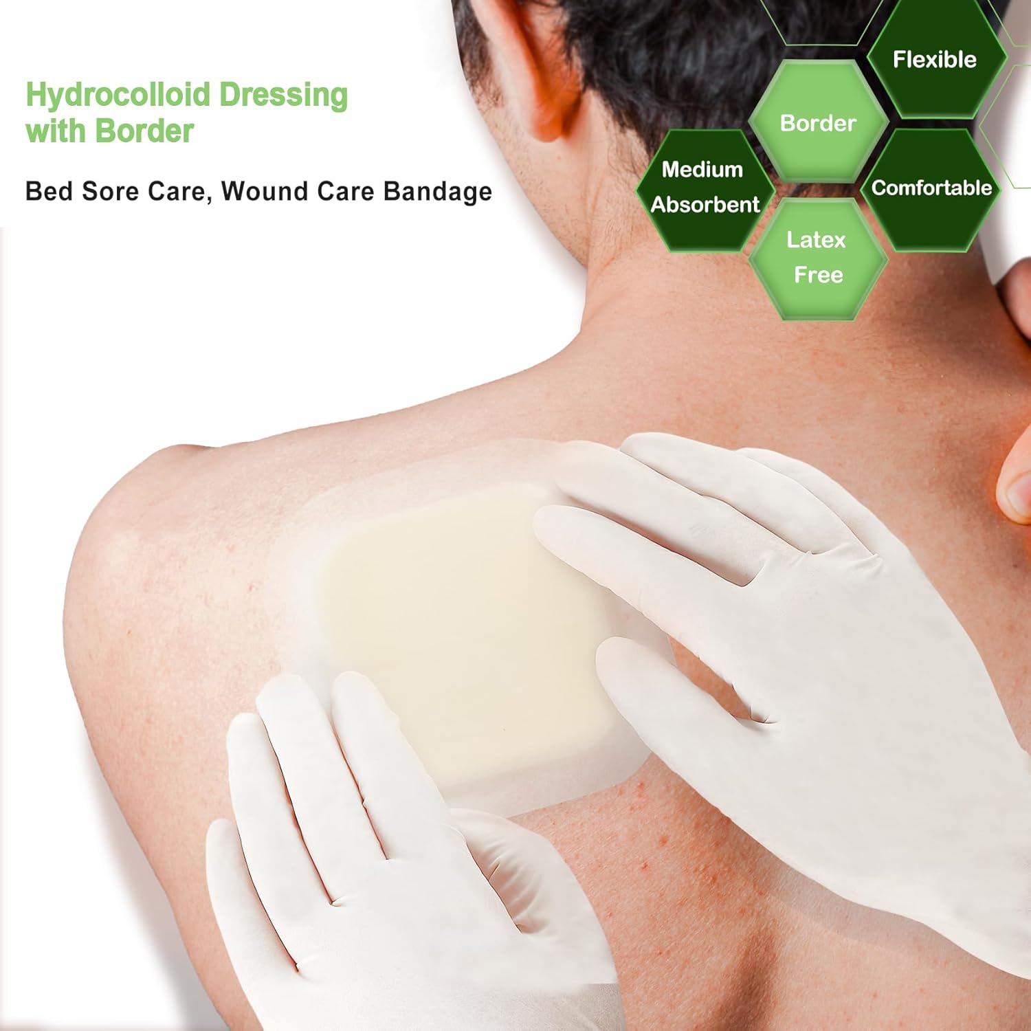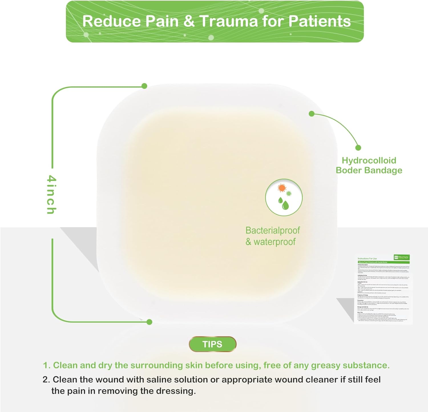 - ✅Self-adhesive & comfortable hydrocolloid border dressing, individual package, 4''x 4'', 10 Packs each box, latex free.