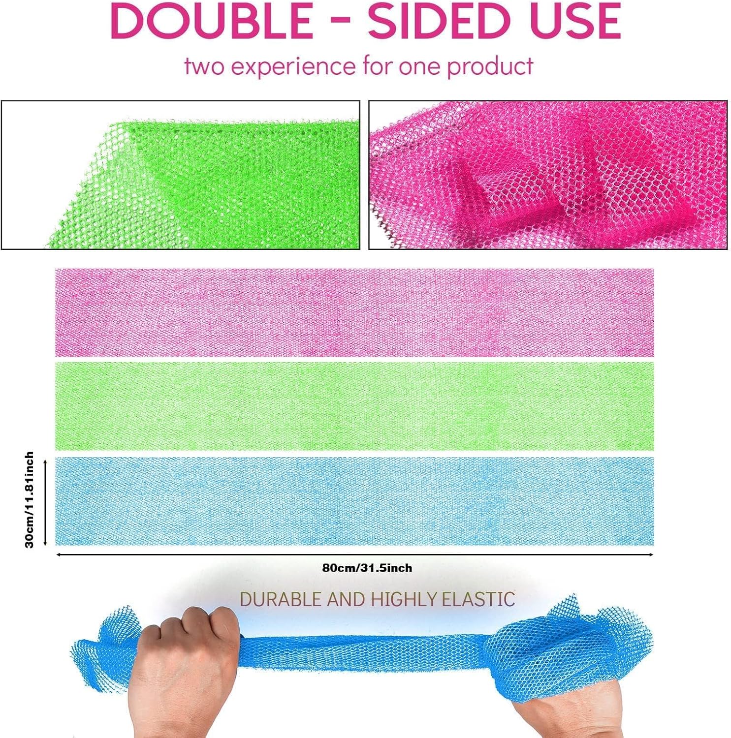 - 【More efficient cleaning】The exfoliating body net is rougher than a ordinary bathing cloth, but soft enough for daily body cleansing.easy for removing dead skin, dirt, oil, and eliminating impurities, unclogging pores, suitable for women and men of most ages to use
