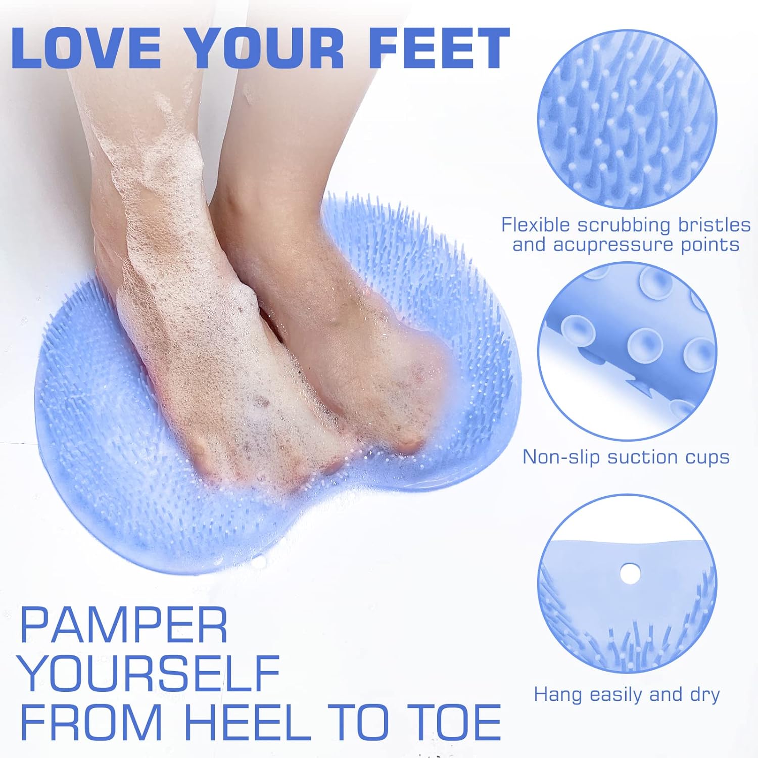 - 【Clean Your Feet Deeply】: The shower foot scrubber will be literally the best part of your shower. Your feet will get fully clean with hundreds of scrubbing bristles, exactly reach the hard-to-get-into areas between toes. Besides, it can remove calluses, dead skin, or other annoying foot skin problems.