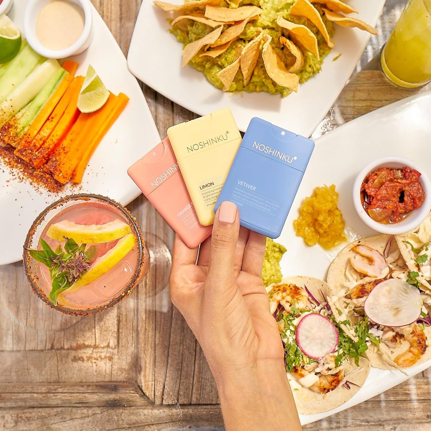 Noshinku - Refillable Hand Sanitizer Discovery Deux 3-Pack, Travel Size Spray, Hydrating Botanical Oils, Natural Ingredients, All Natural Fragrances, Sugarcane Derived Alcohol, No Parabens, No Dyes