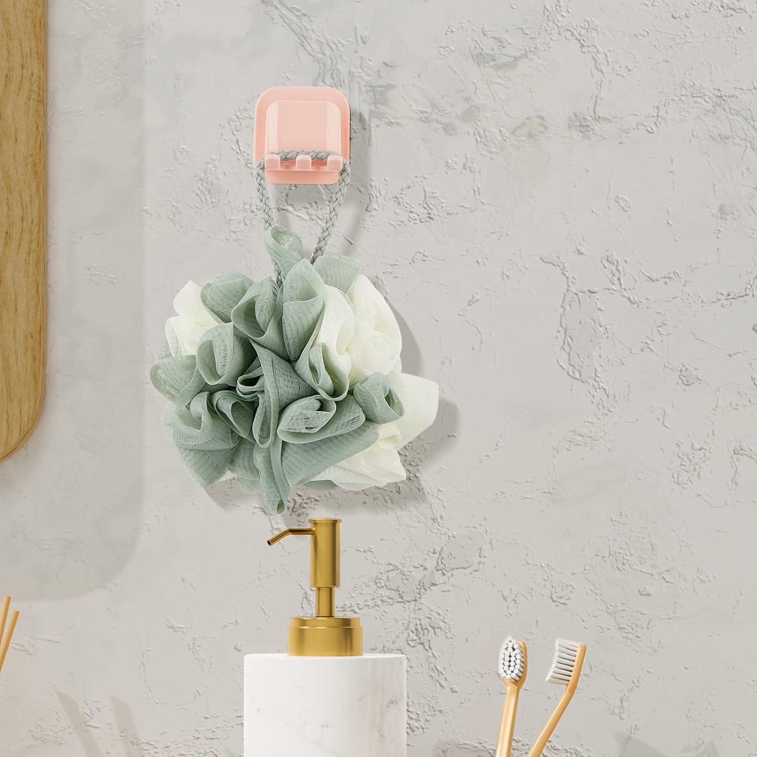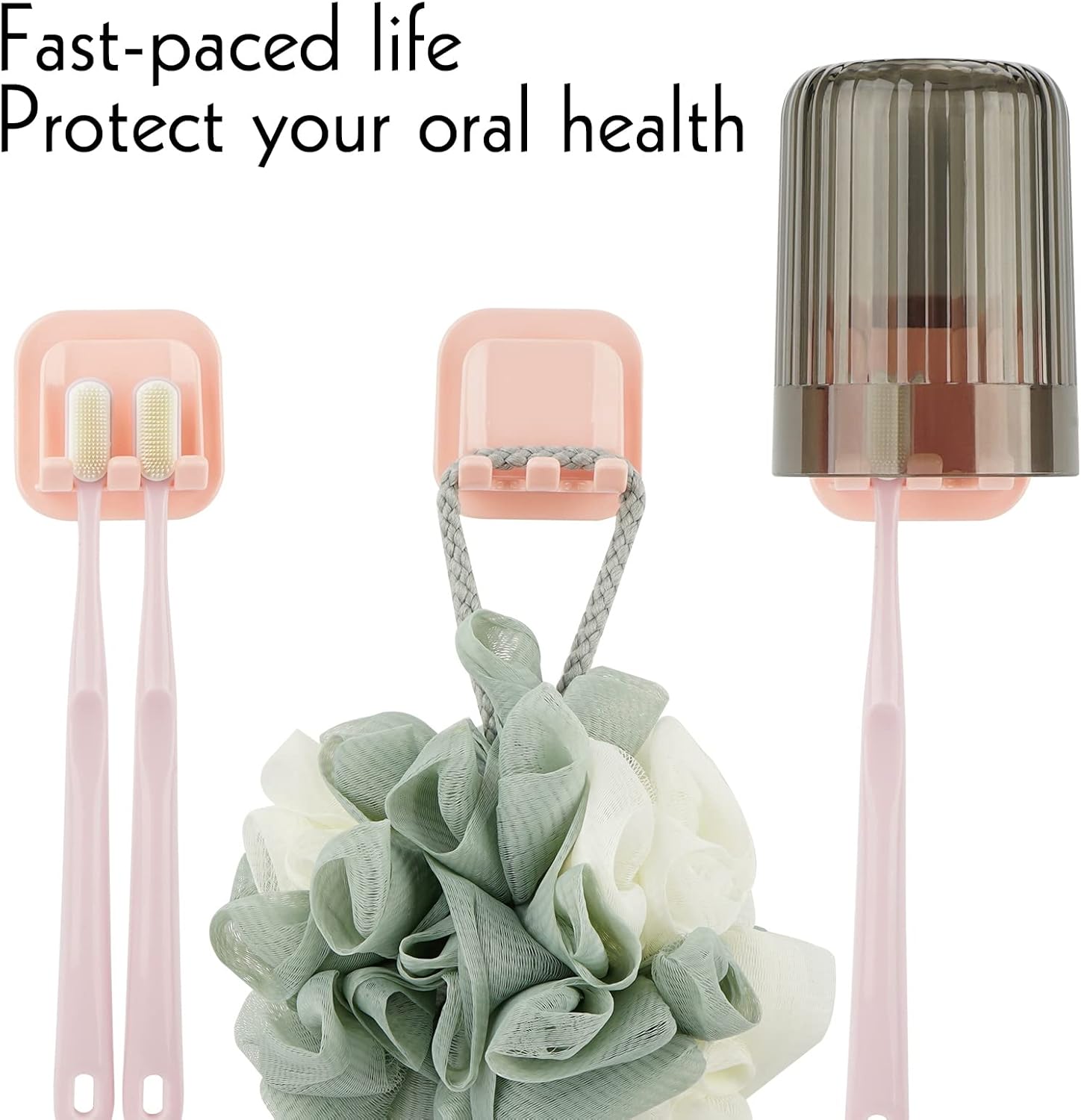 2 PCS Self-Adhesive Toothbrush Holders Wall Mounted, Water Proof Toothbrush Hook, 2 in 1 with Toothbrush Hanger and Gargle Cup Holder for Bathroom Shower (Pink)