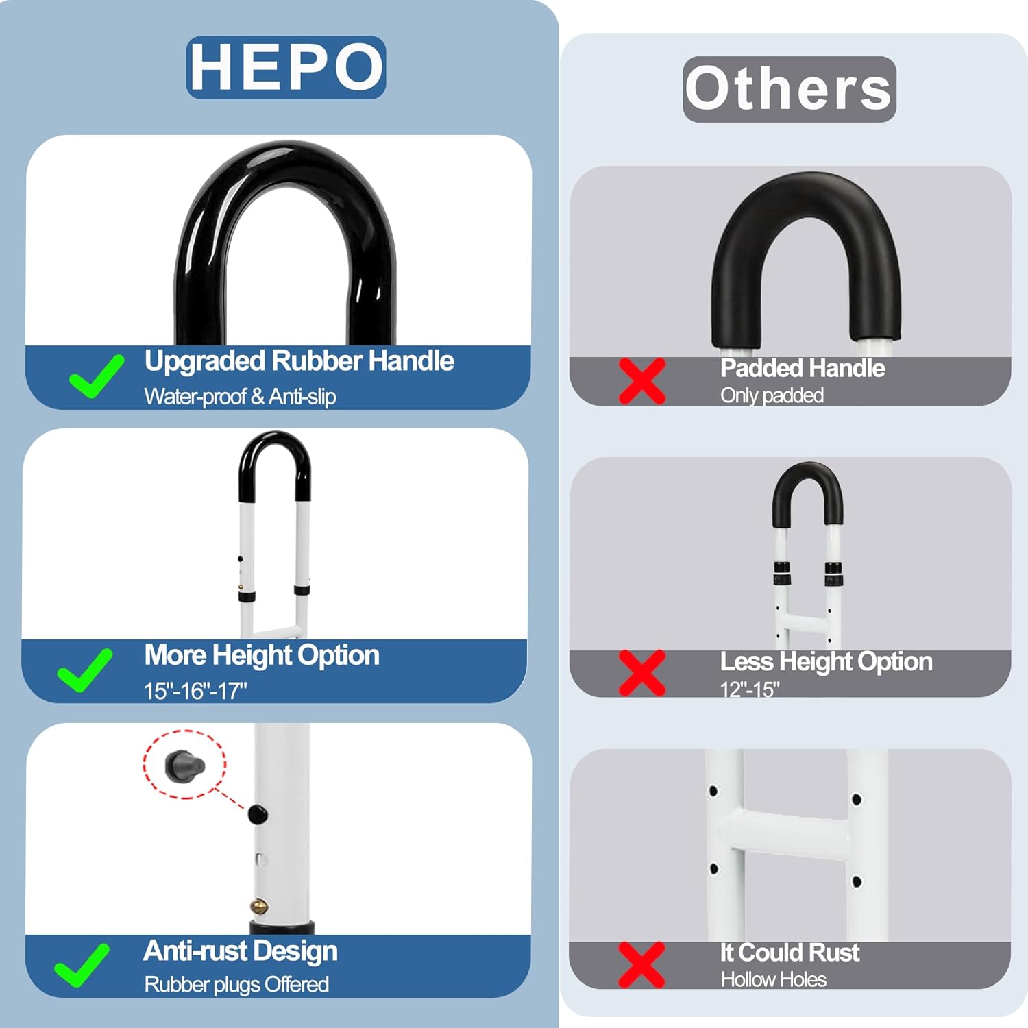 - Enhanced Safety & Support: Hepo bathtub grab bar offers reliable safety and support, ensuring extra protection against slips and falls for seniors and individuals with disabilities.