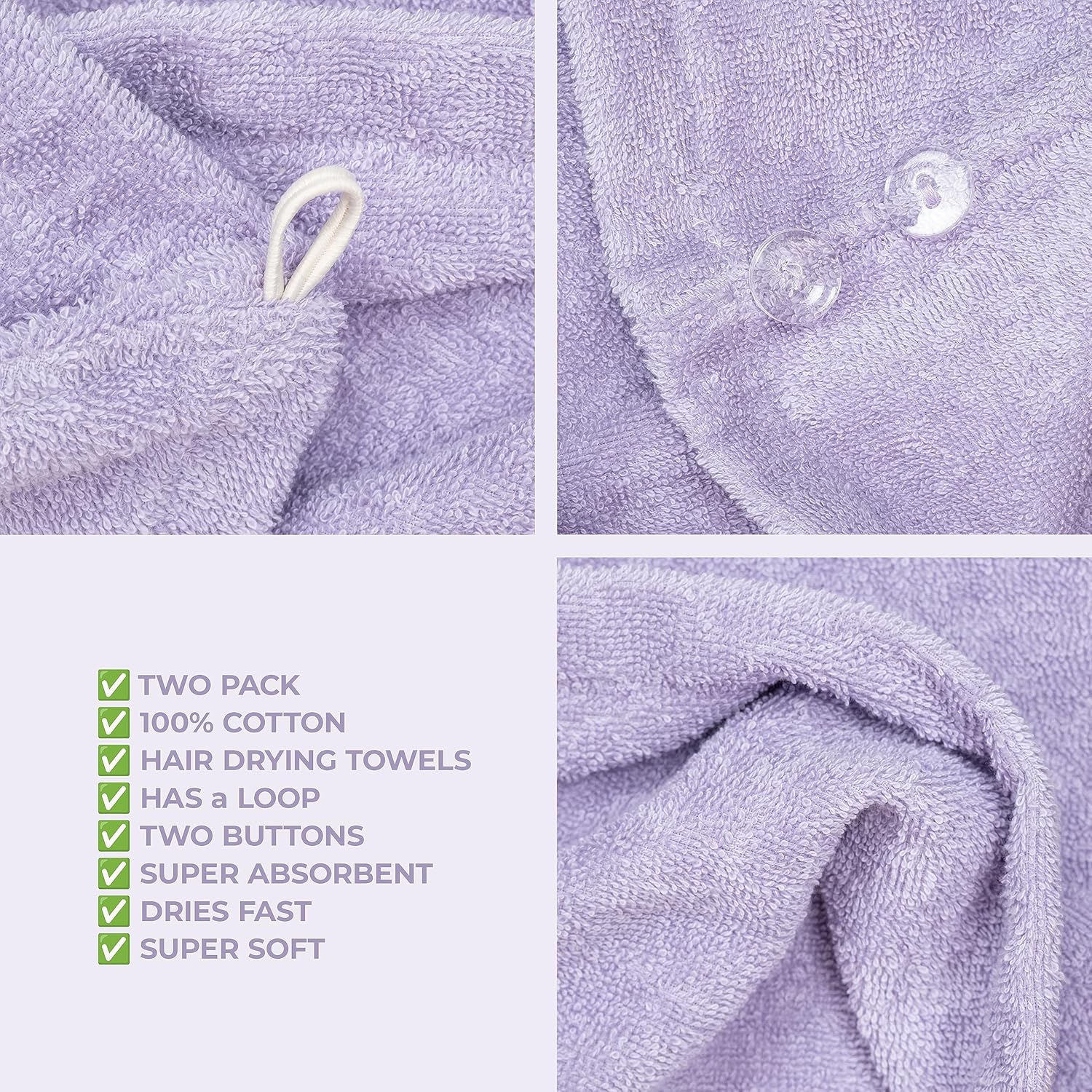 - ✅ 100% Cotton Hair Towels