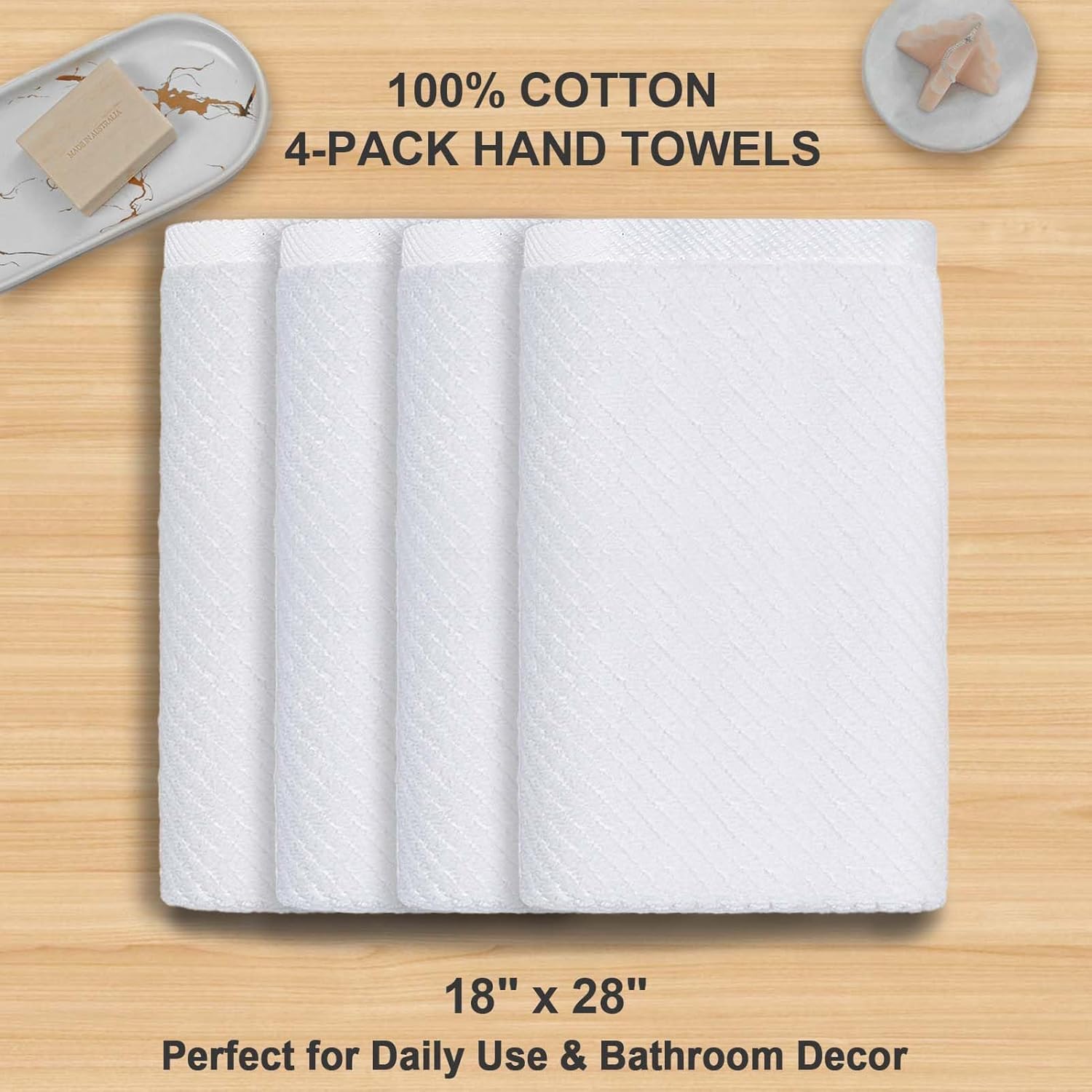 - 【Soft & Lightweight】 This set includes four lightweight hand towels, each 18 x 28 inches, made from 100% zero-twist cotton. These towels offer a luxurious feel that is both thick, soft, and large, all while maintaining a lightweight design. Ideal for daily use at home, the gym, spa, or hotel, they deliver comfort without excess weight. Fade-resistant, low-linting, breathable, and long-lasting