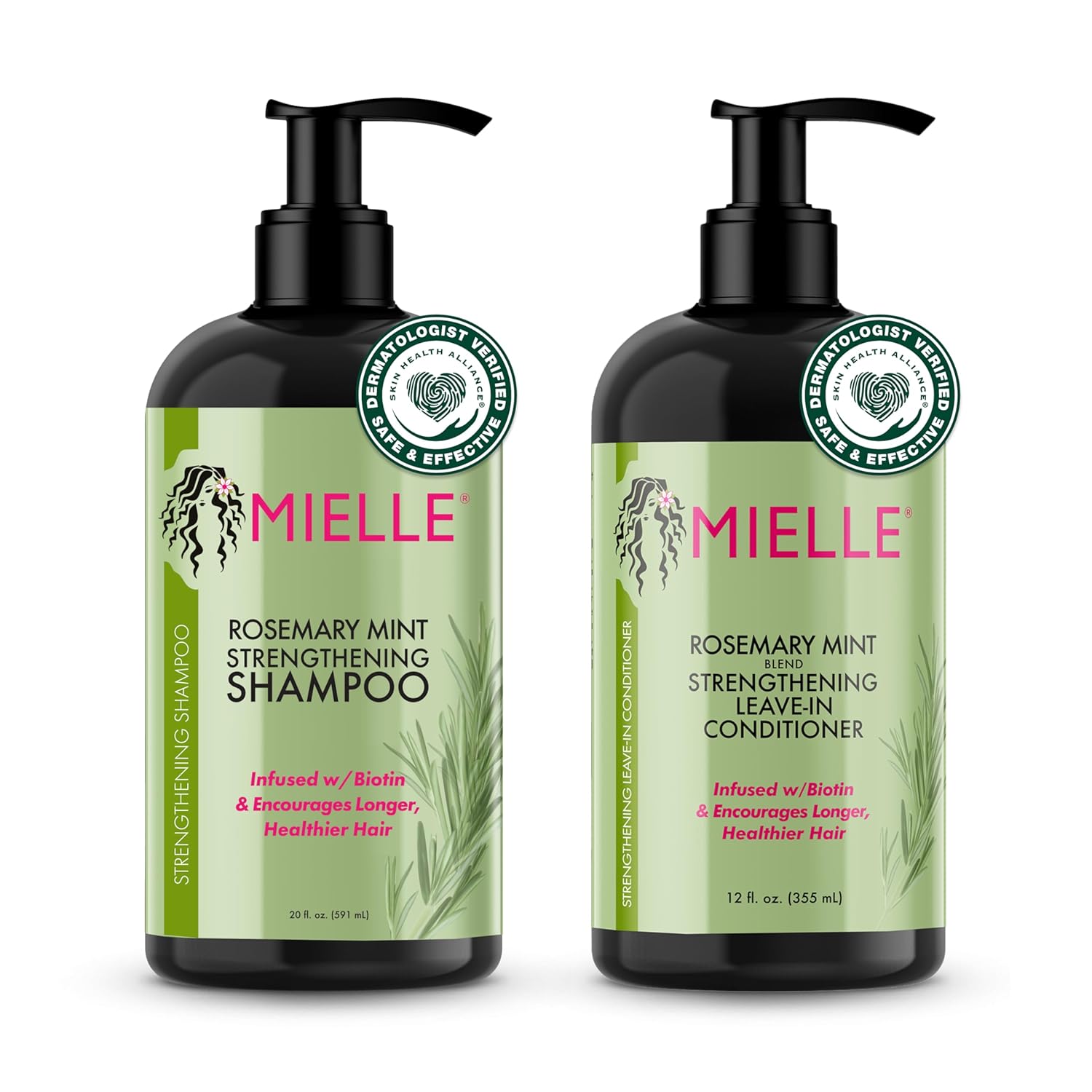 - Mielle Organics Rosemary Mint Strengthening Shampoo and Leave-In Conditioner Infused with Biotin, Cleanses and Helps Strengthen Weak and Brittle Hair, 12 Ounces