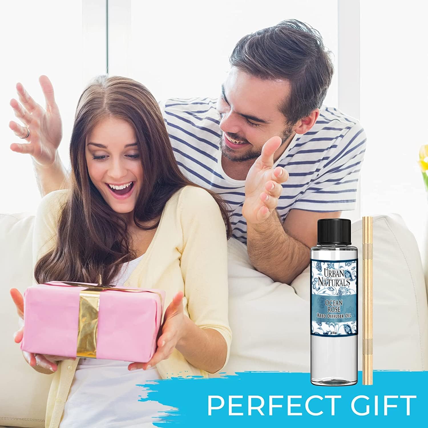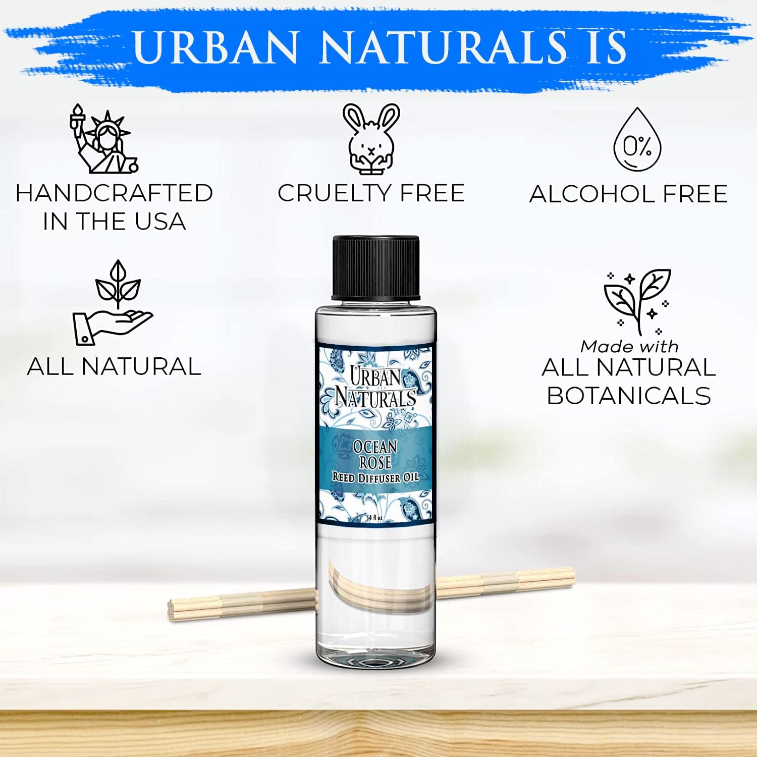 Urban Naturals Reed Diffuser Oil Refill, Ocean Rose Diffuser Oils with Rose, Lemongrass, Basil, 4 oz + Free Reed Sticks, Made in The USA