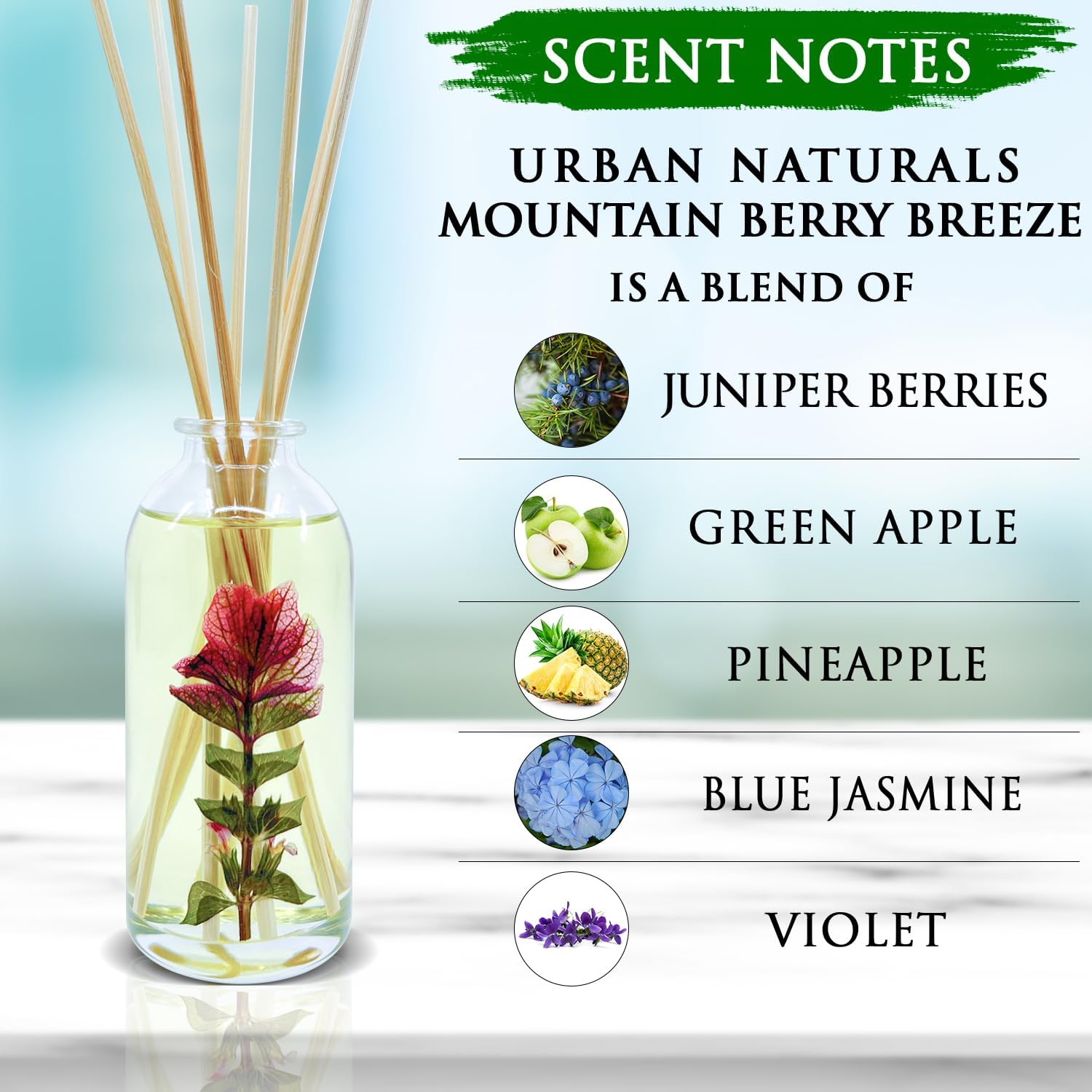 Urban Naturals Mountain Berry Breeze Reed Diffuser Set | Made with Essential Oils & Real Botanicals | Juniper Berries, Green Apple, Jasmine, Violet & Fresh Woods | Made in The USA