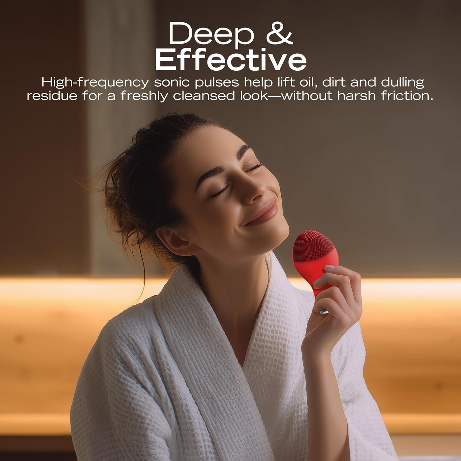 Nautica PC120 Facial Cleansing Brush Made with Ultra-Hygienic Soft Silicone, Waterproof, Rechargeable Vibrating Face Exfoliator Scrub Brush with Sonic Technology for Men & Women - Dancing Red