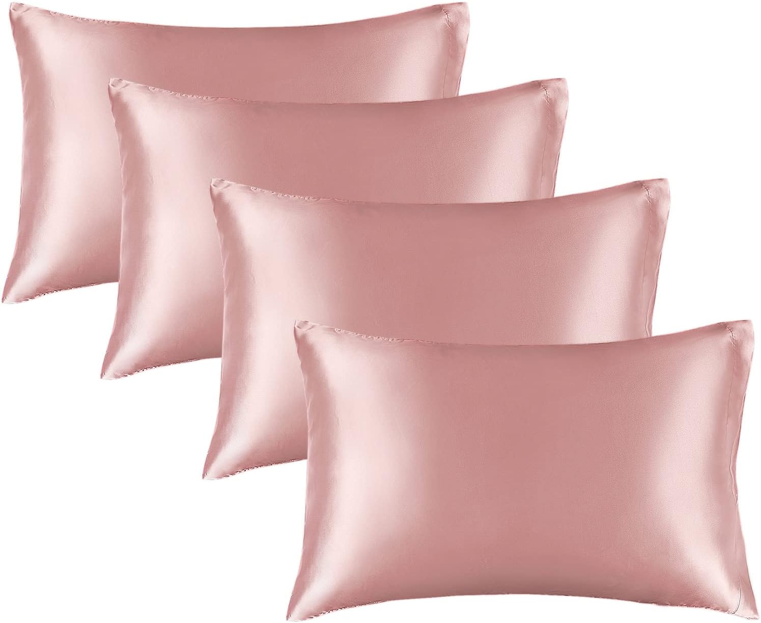 BEDELITE Satin Pillowcase for Hair and Skin, Super Soft Similar to Silk Pillow Cases 4 Pack with Envelope Closure, Cooling Pillowcases for Women Men (20"x26" Standard Size, Rose Pink)