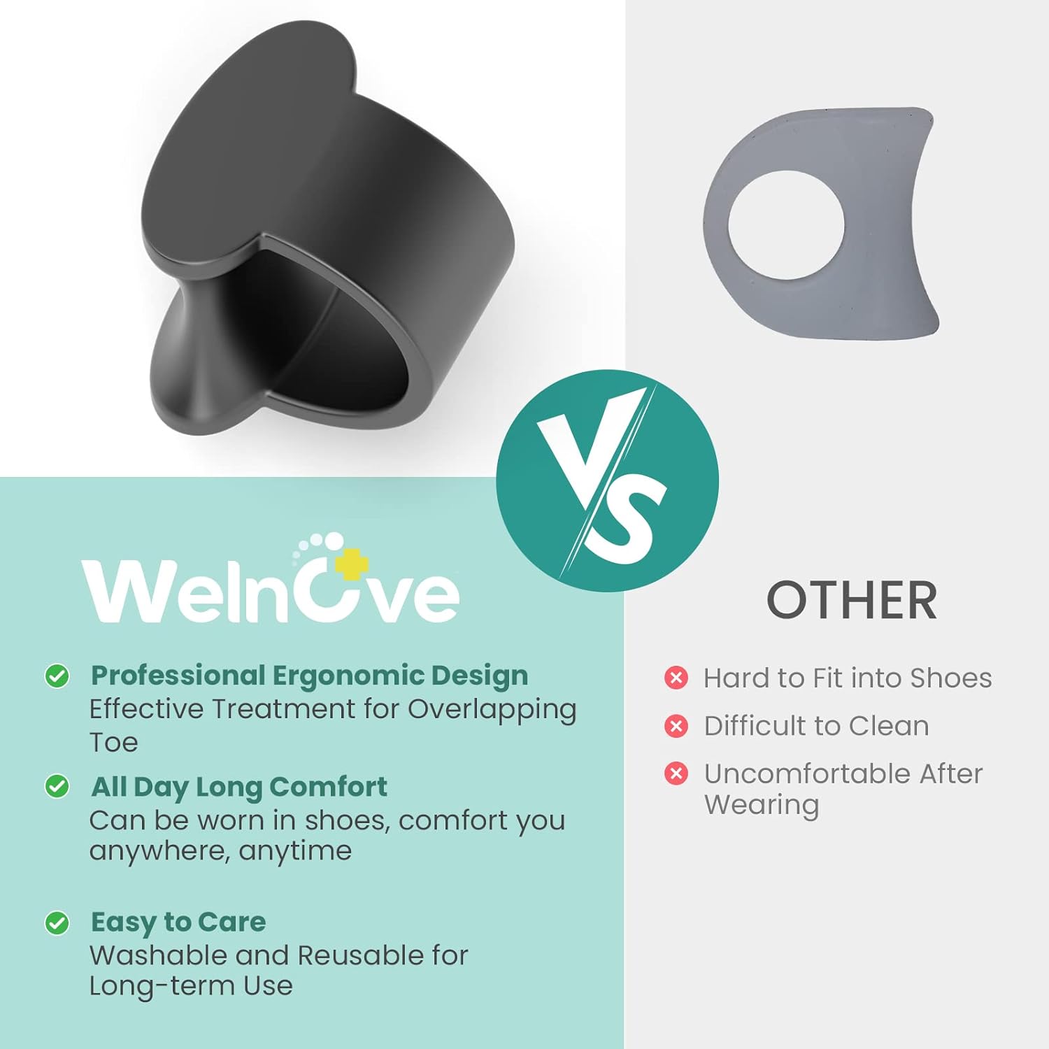 Welnove Pinky Toe Separator, 12 Pcs Black Gel Toe Spacers Bunion Corrector for Feet Women and Man, Little Toe Cushions for Curled Overlapping