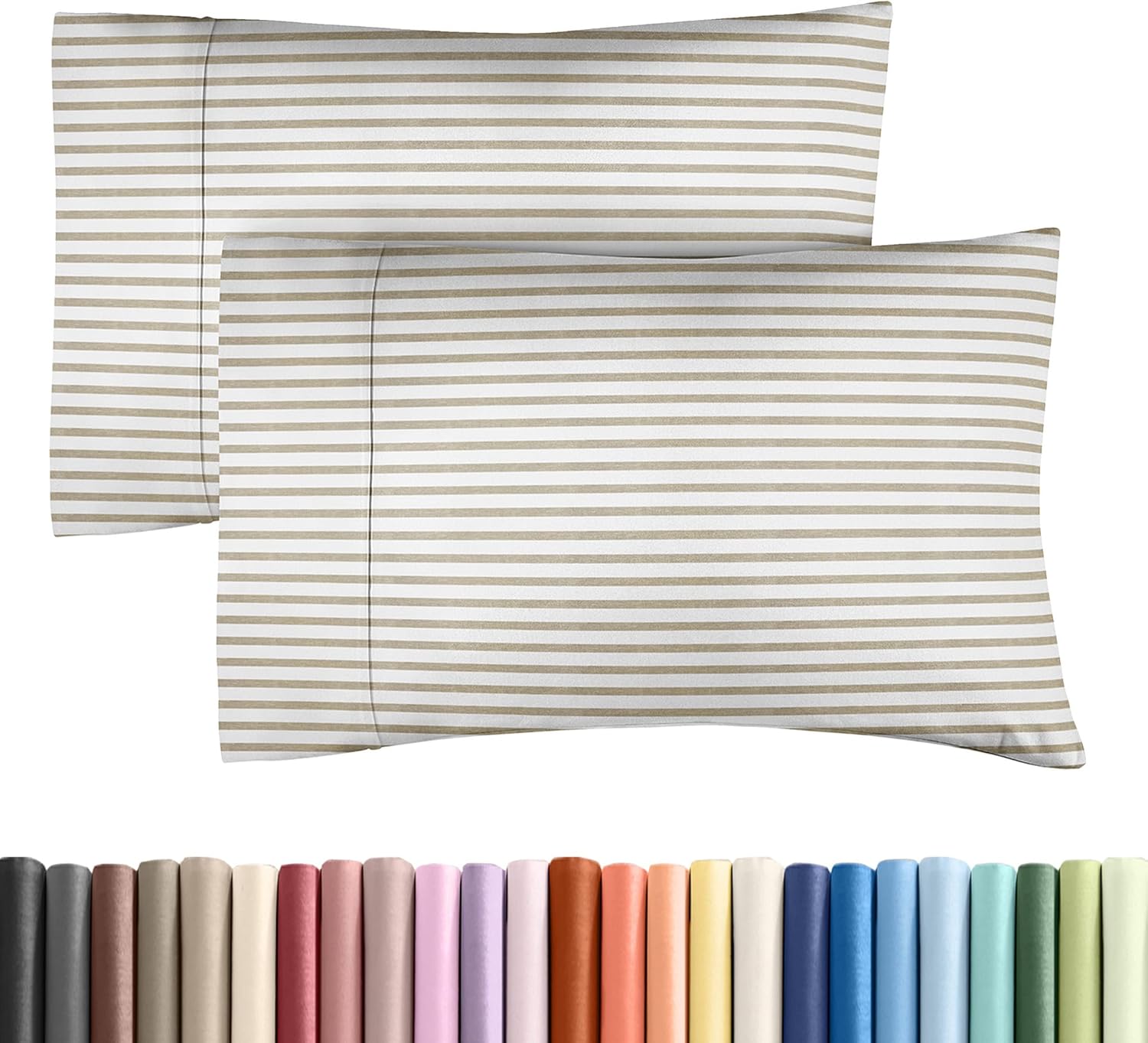 King Pillow Cases Set of 2 - Ultra Soft Hotel Quality Pillowcase Covers - Comfy, Cozy & Wrinkle Free - Shrinkage and Fade Resistant - Machine Washable Pillow Protectors - 2 Piece Set - Beige Stripes 2