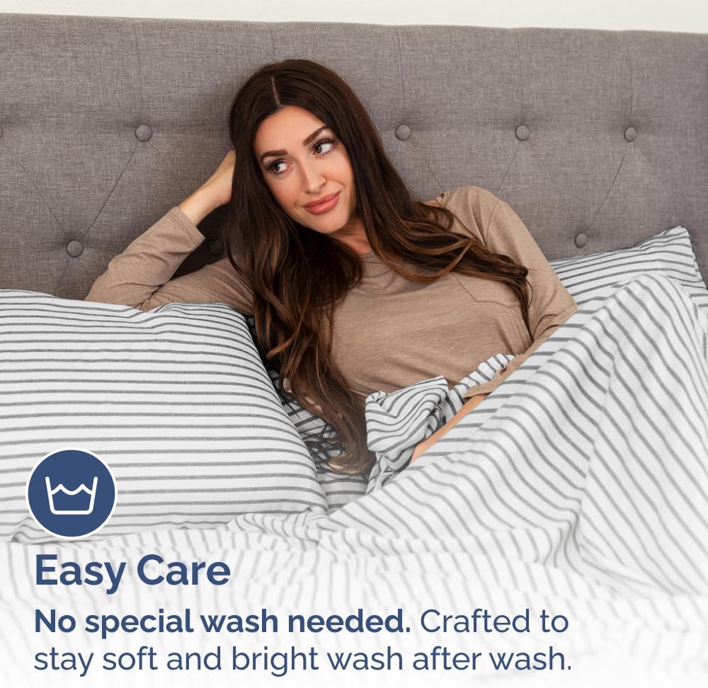 King Pillow Cases Set of 2 - Ultra Soft Hotel Quality Pillowcase Covers - Comfy, Cozy & Wrinkle Free - Shrinkage and Fade Resistant - Machine Washable Pillow Protectors - 2 Piece Set - Grey Stripes 2