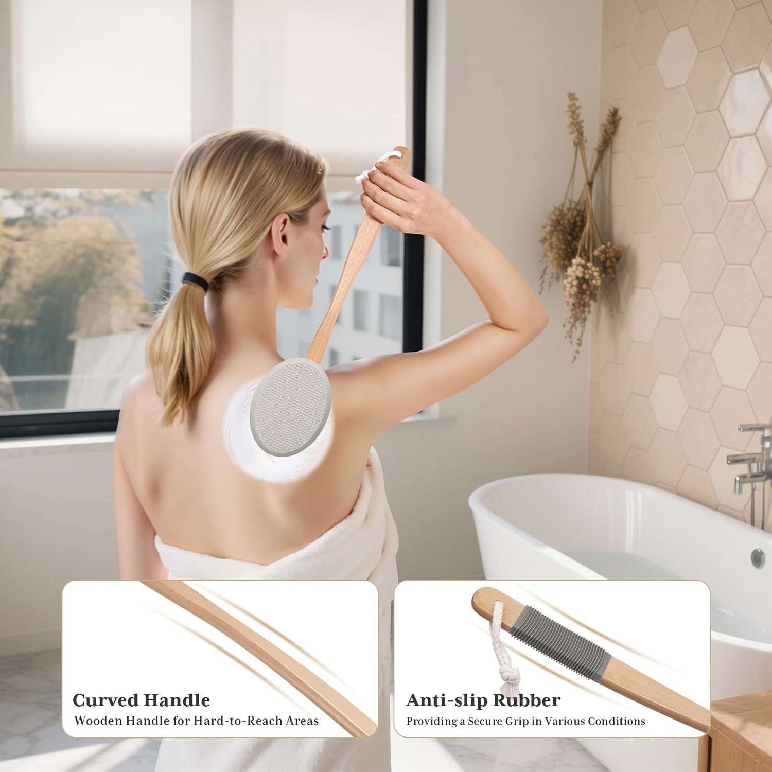 - Premium materials: Our lotion applicator features a wooden handle with a textured rubber sleeve that offers a non-slip grip, making it easy and comfortable to use.
