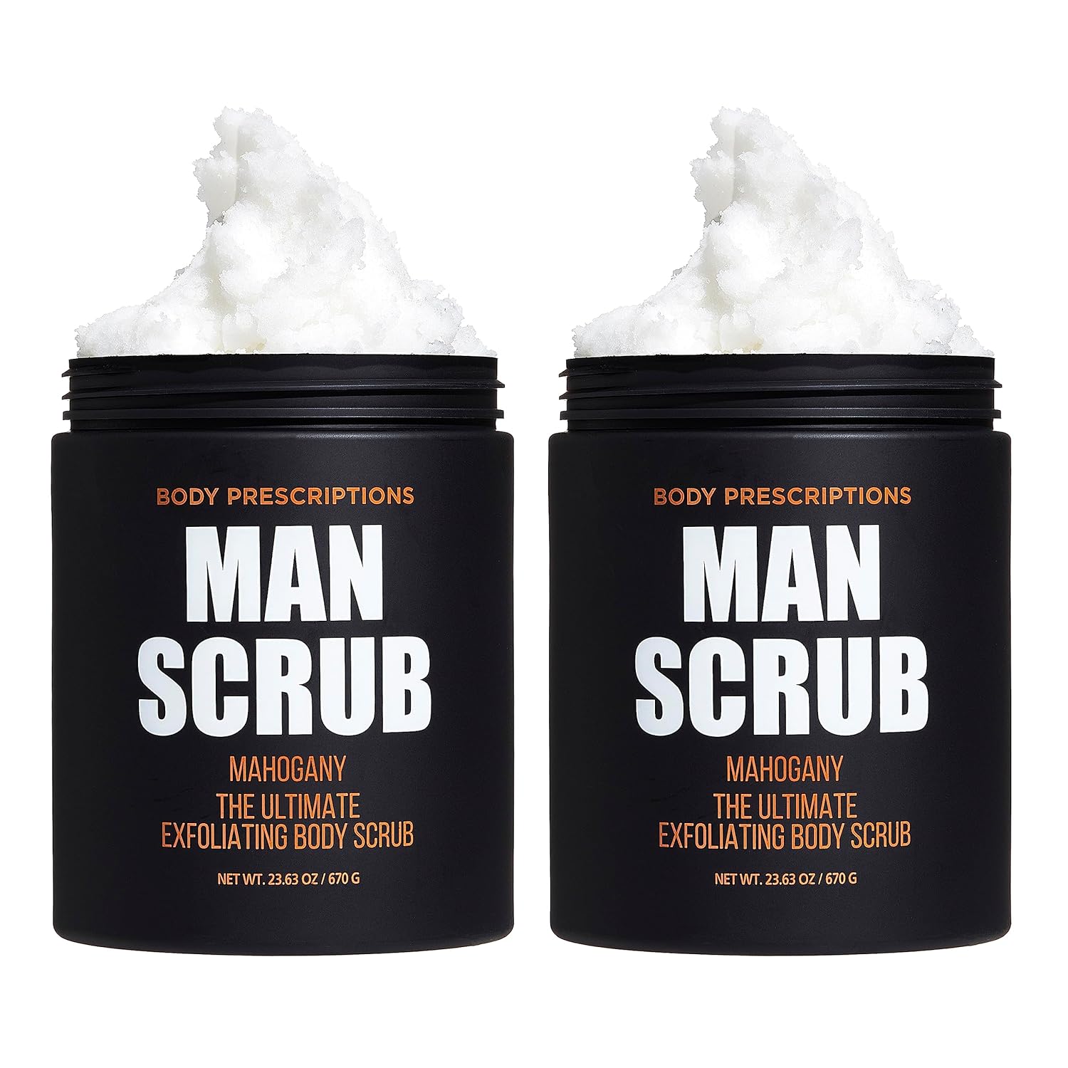 Body Prescriptions Men’s Exfoliating Body Scrub – Ultimate Skin Cleansing Wash in Jar with Twist-Top Lid, For All Skin Types, 21 Ounce (Pack of 2), Mahogany