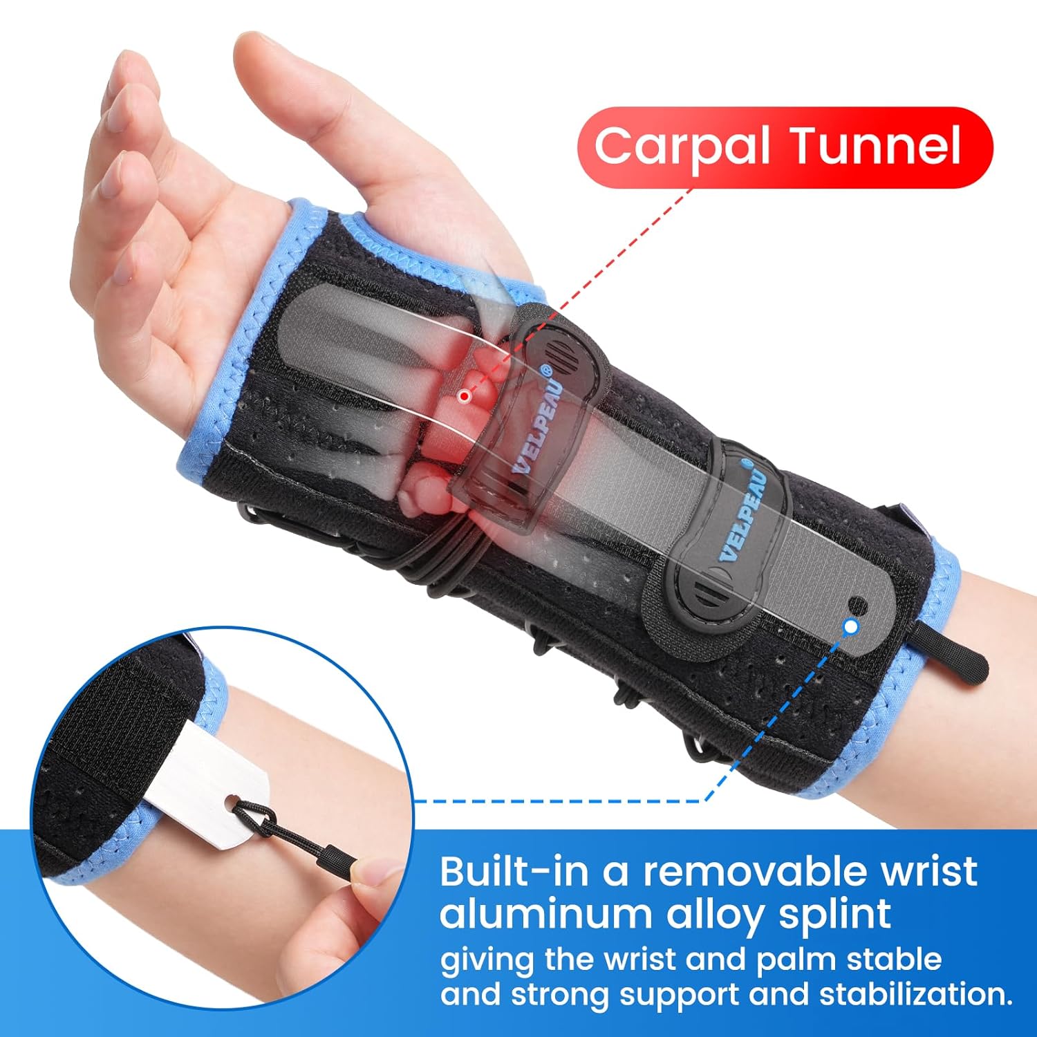 - 【Strong and Stabilizing Support】 The Wrist Brace is expertly crafted to provide exceptional stability with a triple-support features. It includes a removable aluminum palm rest, two elastic support bars, and a dorsal hand support splint, all working together to ensure superior support and optimal restriction of wrist movement. This brace is perfect for relieving carpal tunnel symptoms, sprains, arthritis, tendonitis, and wrist pain after cast removal.